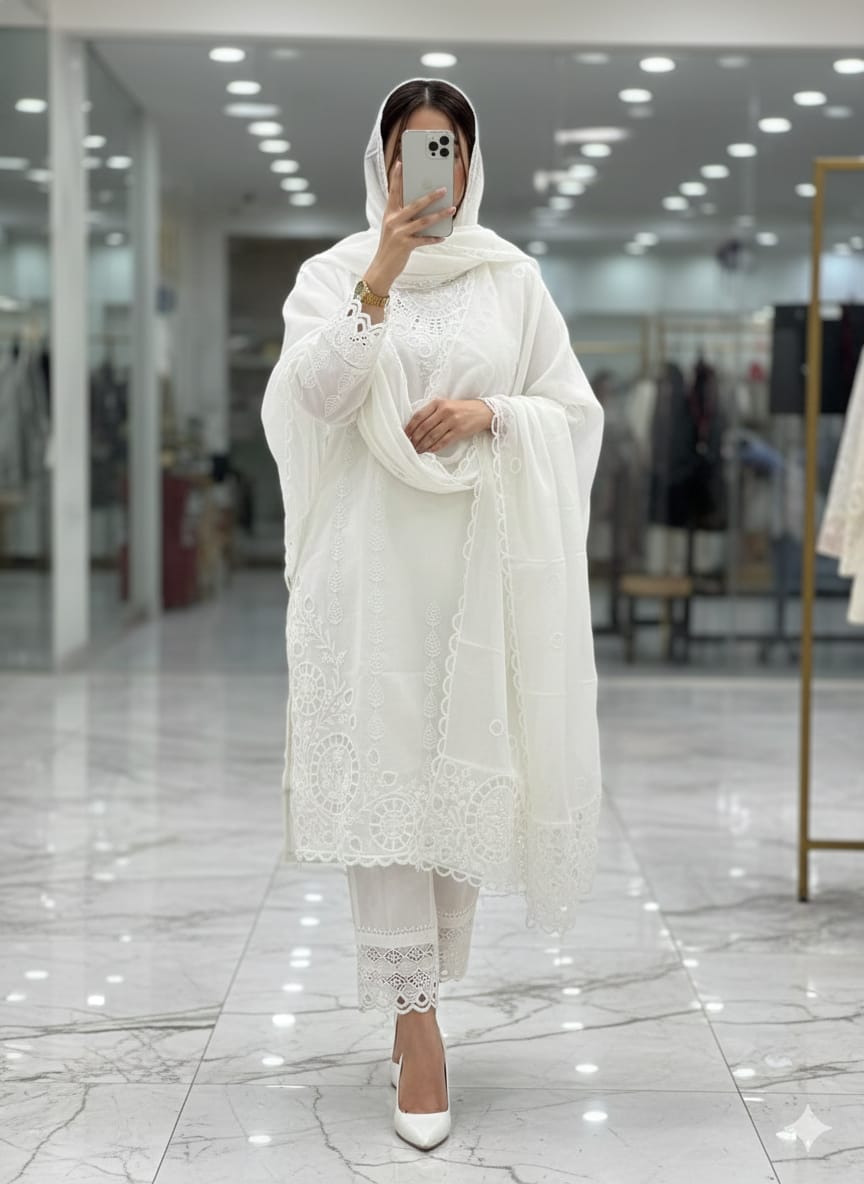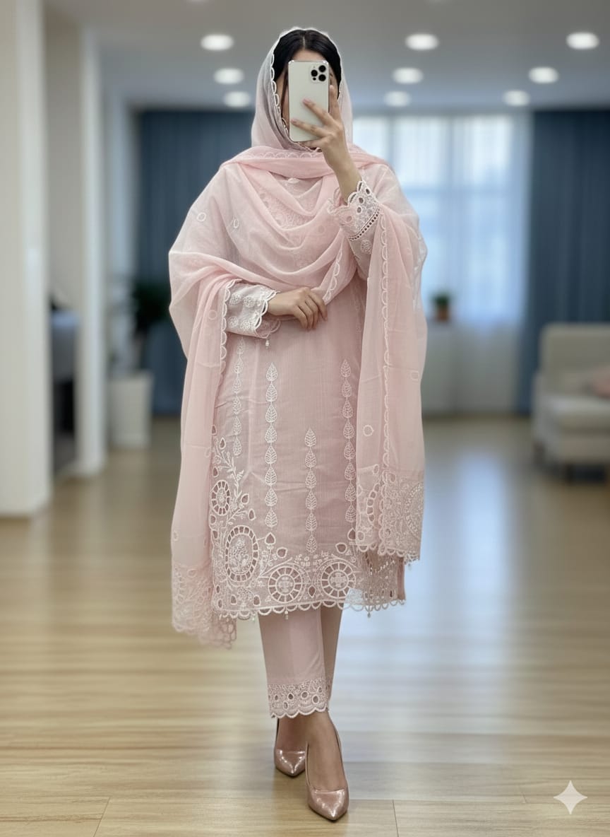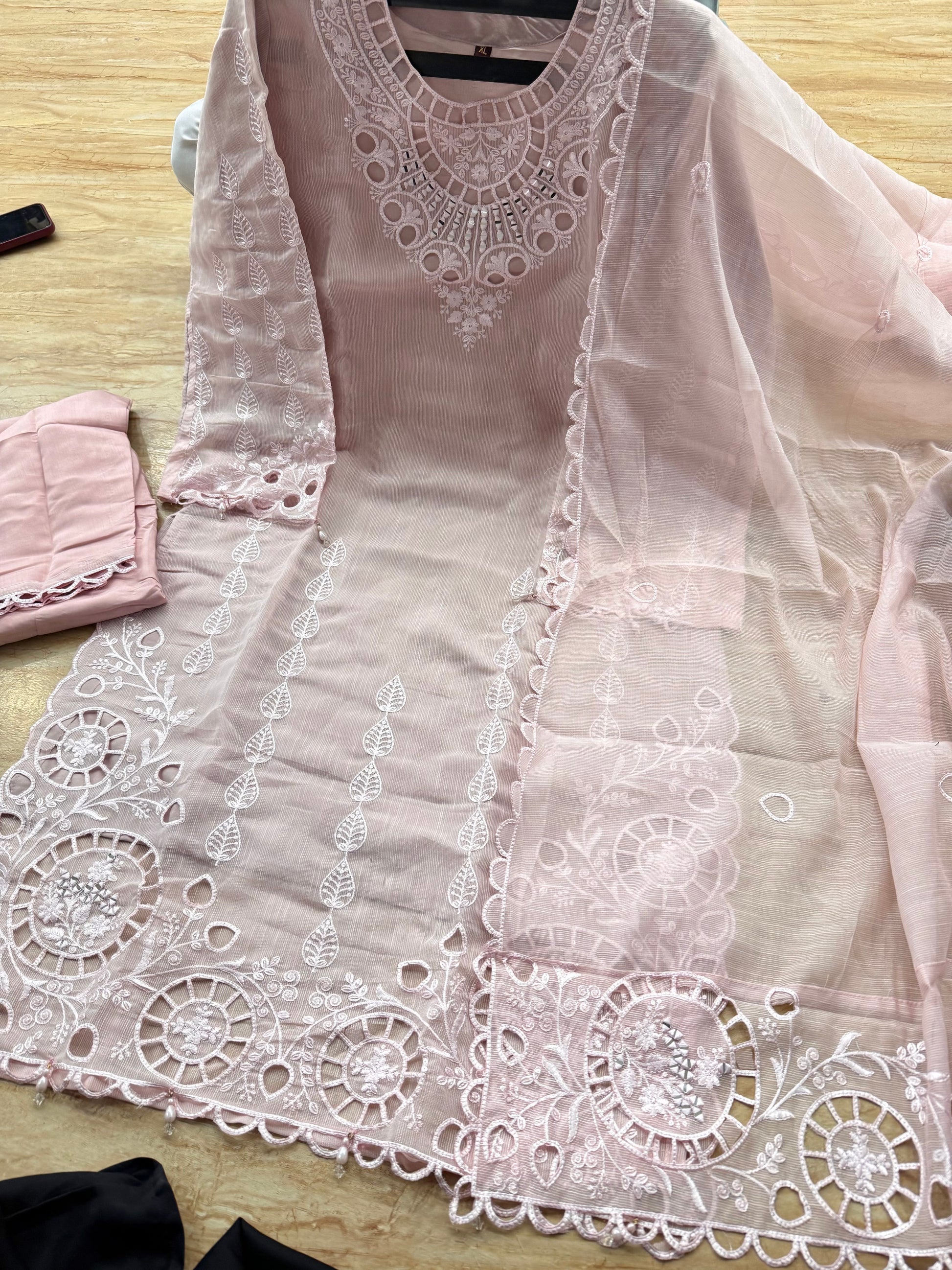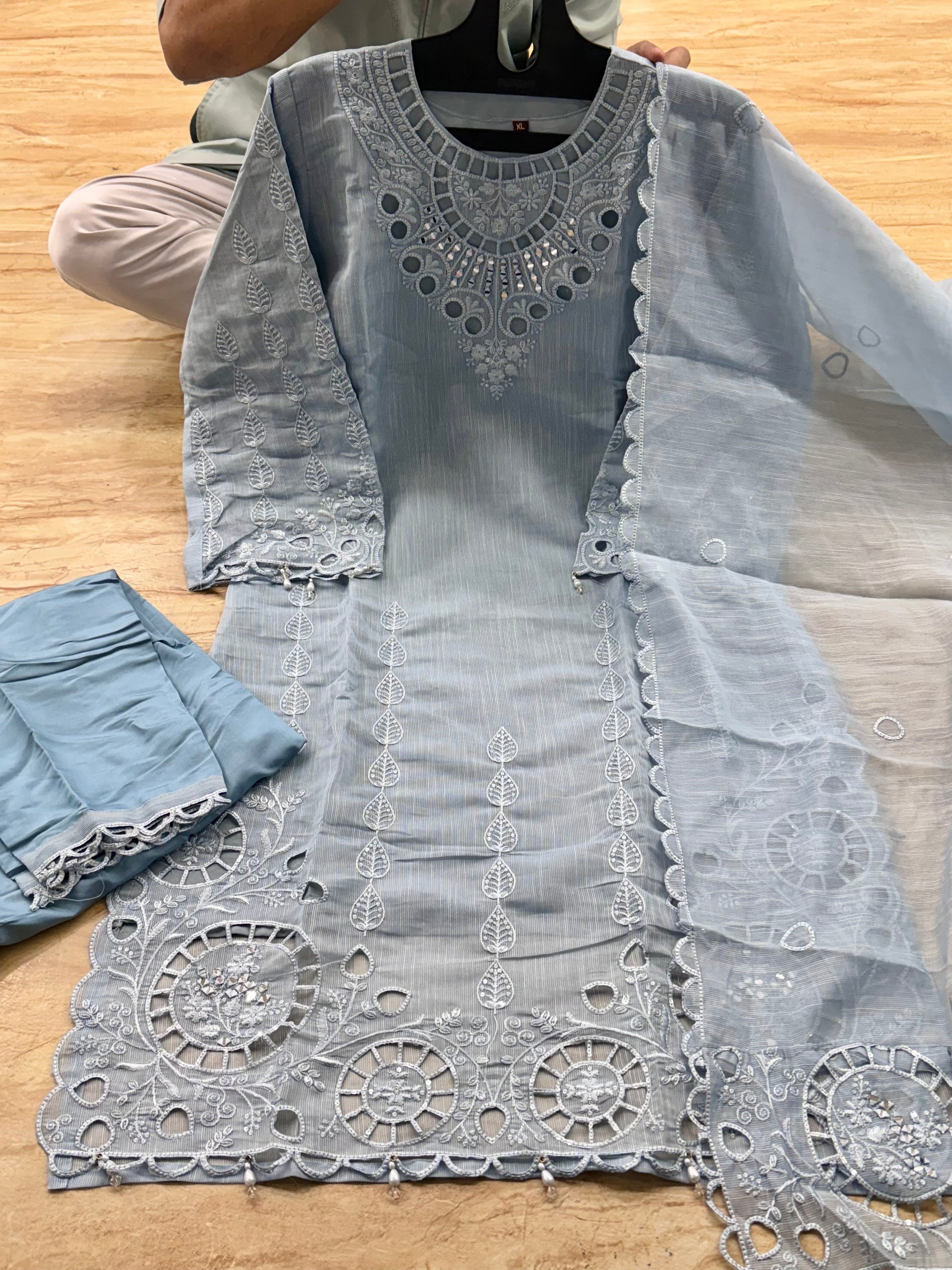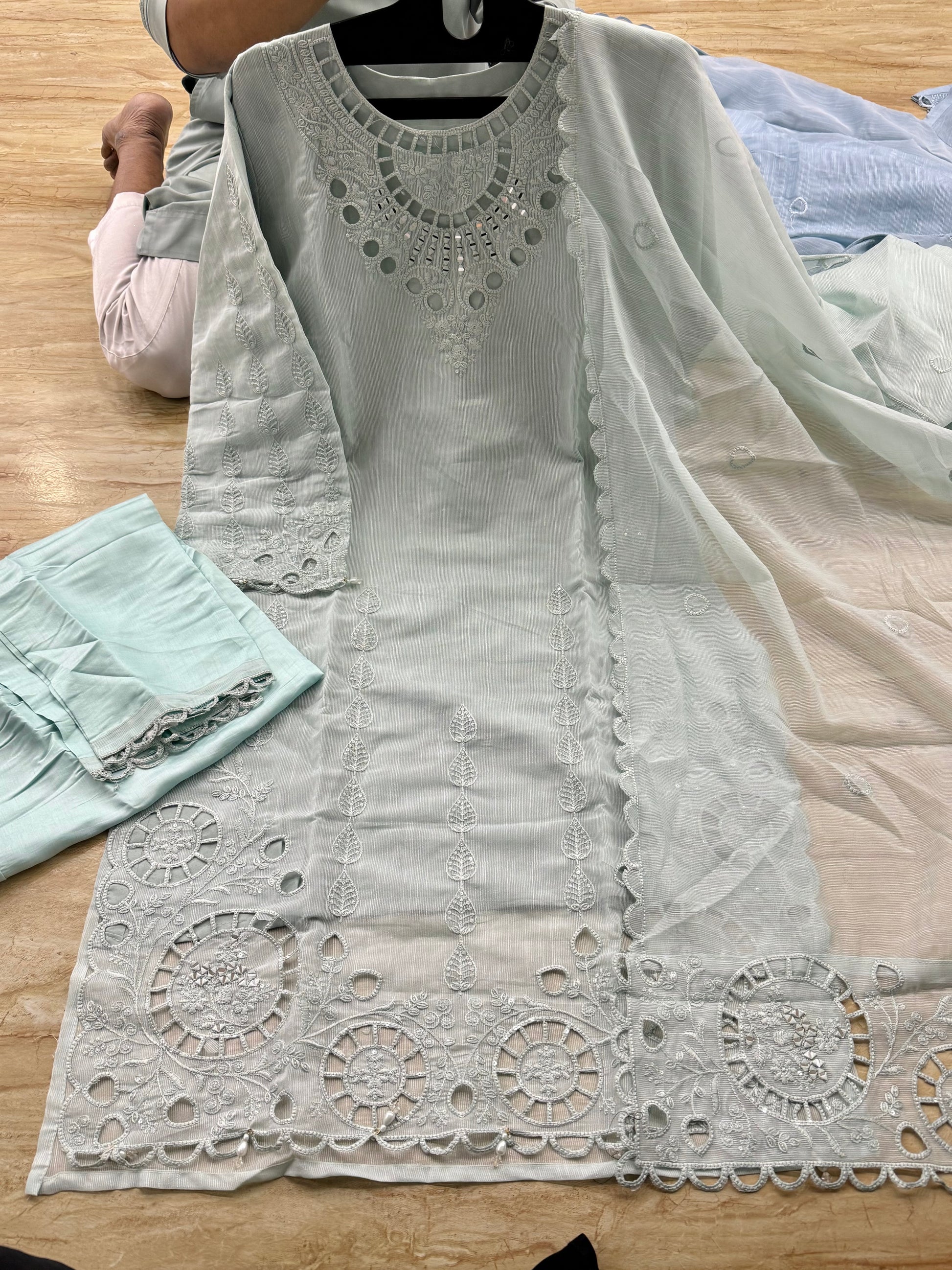 vertical mirror work cutwork embrdrd suits