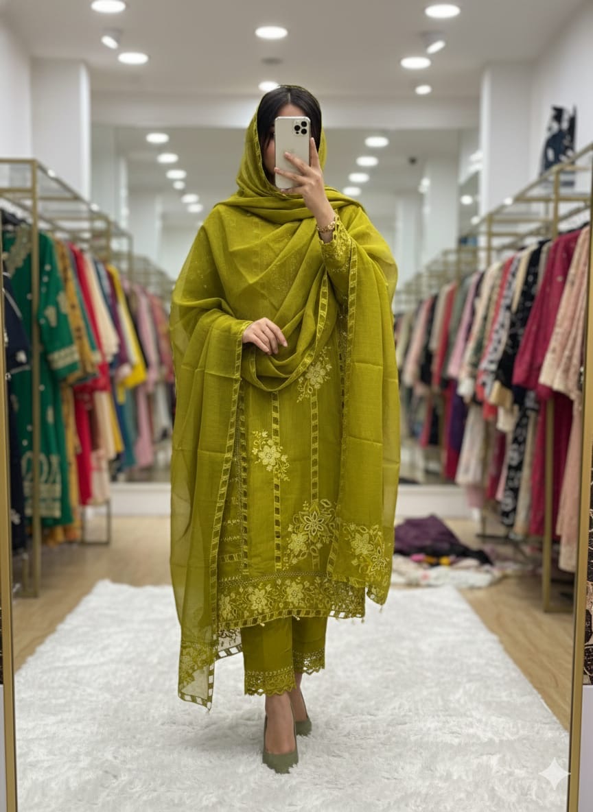 Vertical kota cotton full cutwork suit with mirror work and latkanspv cotton pants with cutworkKota vertical dupatta cutwork
