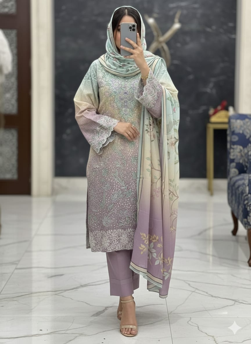 Full heavy work complete cambric cotton shades outfitcotton white colour bottoms unstitchedlawn printed dupattas