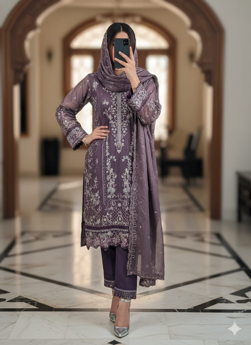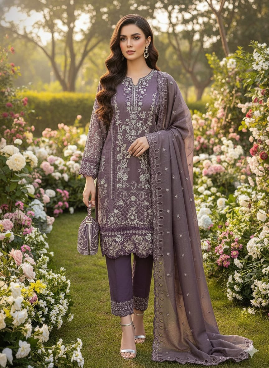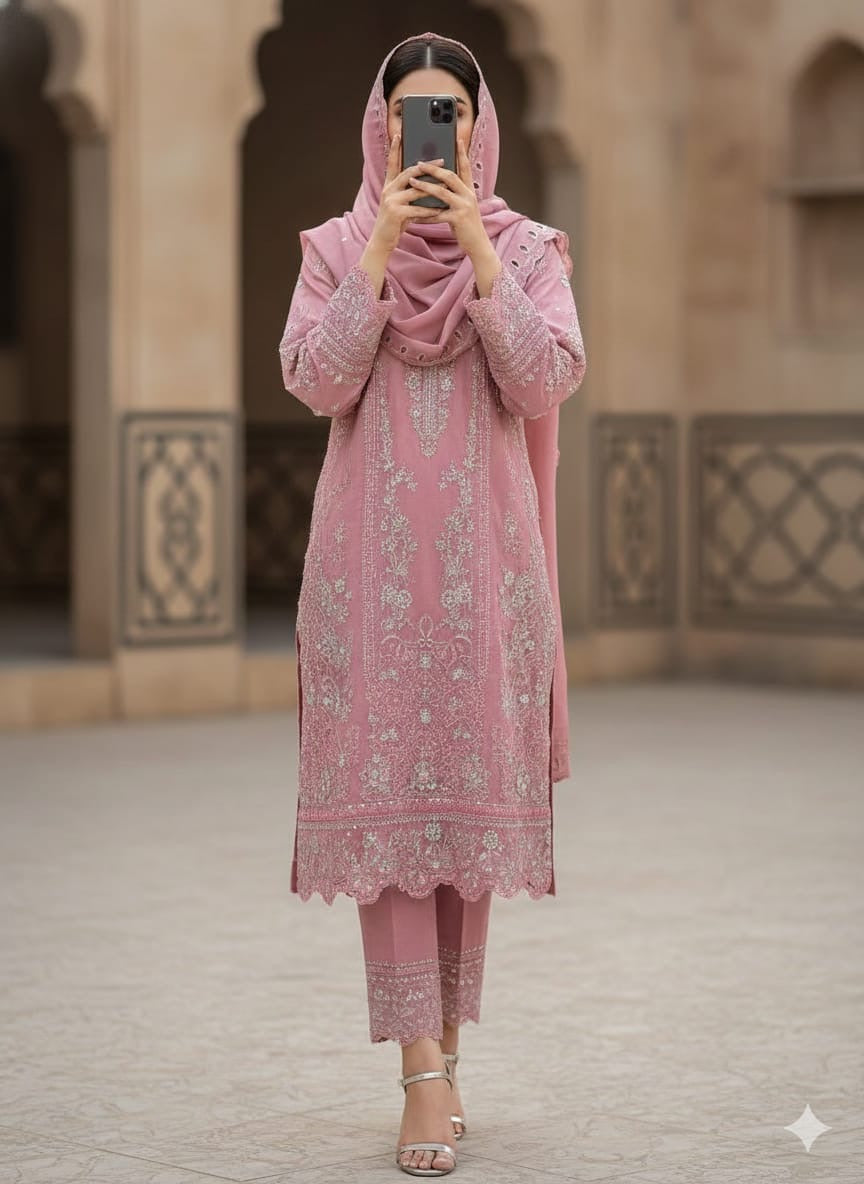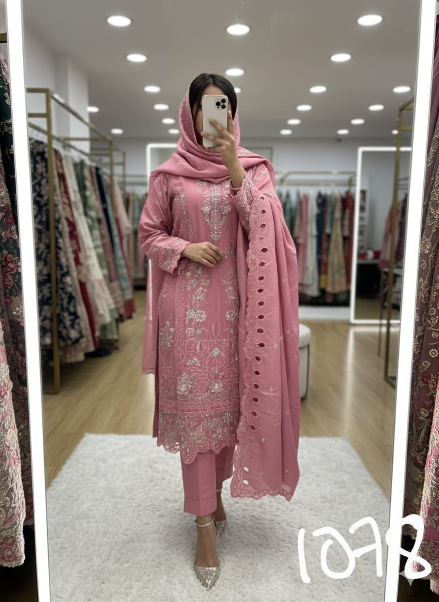 Pure shimmer cotton ful handwork 3d flower work embroidered outfit shimmer cotton cutwork embroidered dupattaPV cotton pants with work