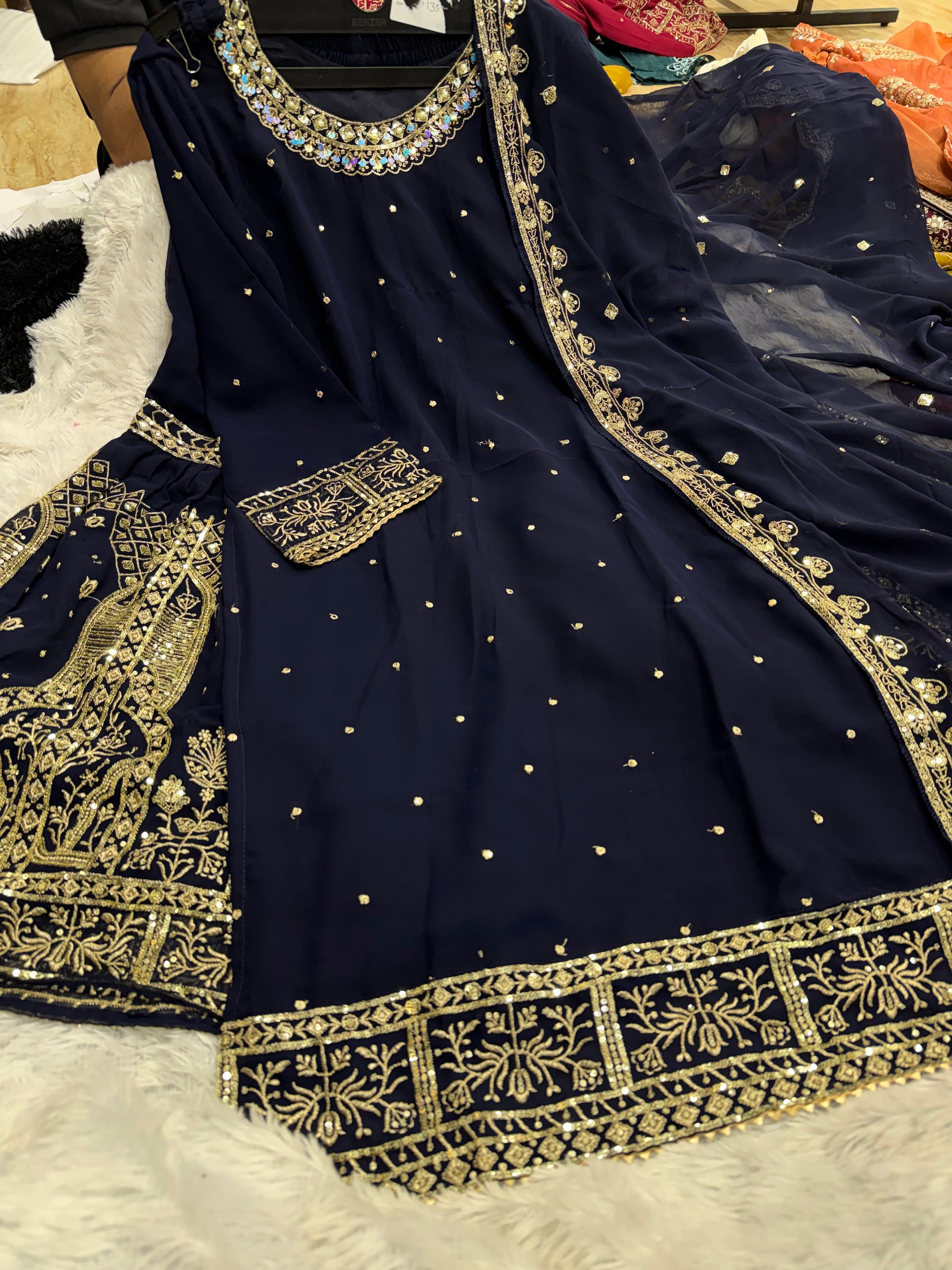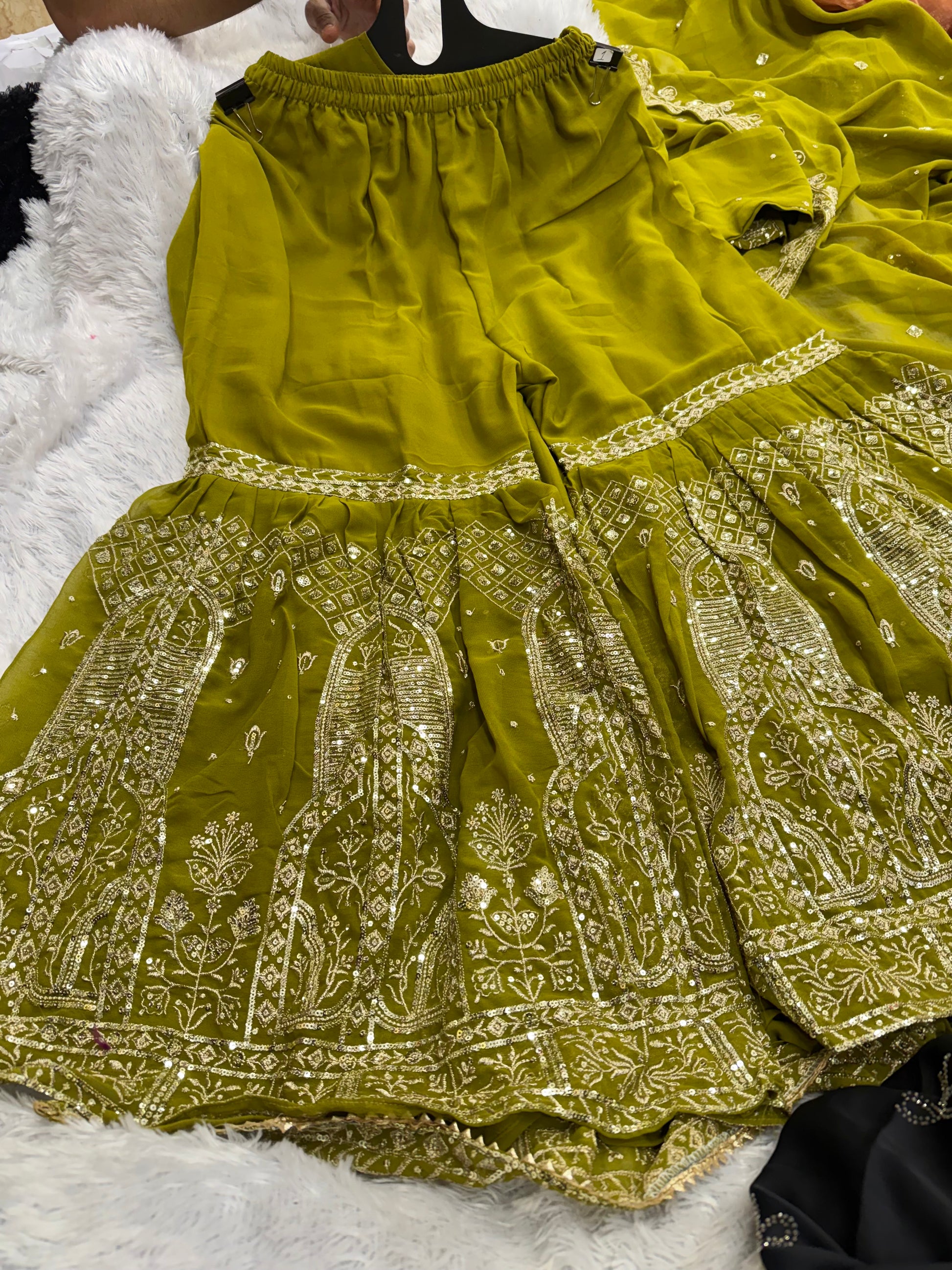 Georgtte outfit embrdrdgharara georgrtte heavy workgeorgette dupatta