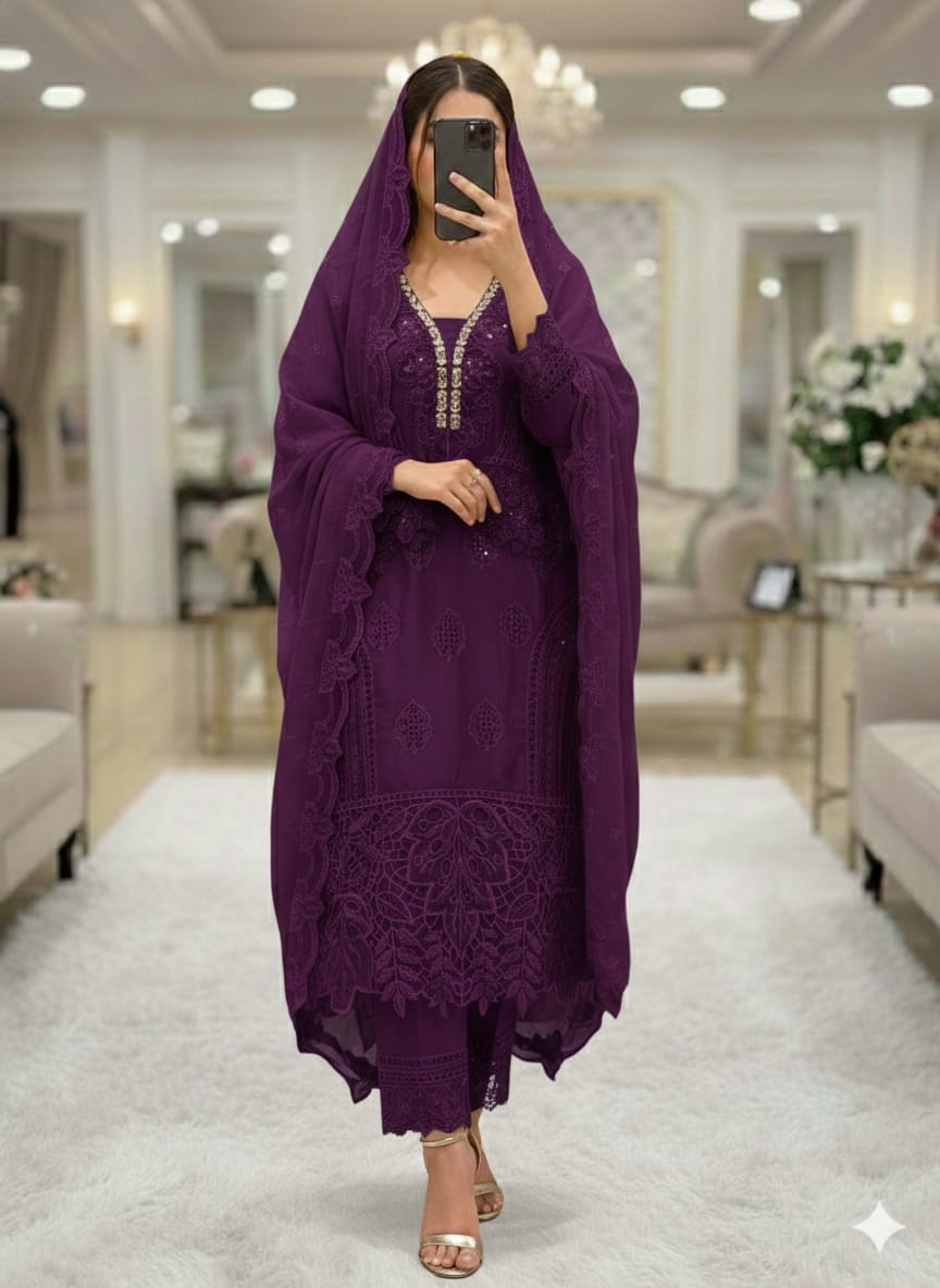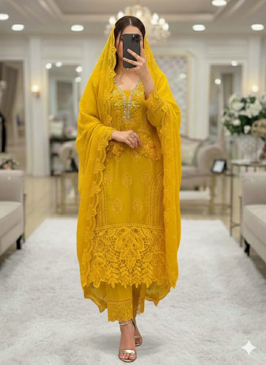 Pure chiffon heavy work neckline handwork full premium and heavy pcsglace cotton pantspure chiffon full heavy work embroidered dupattas