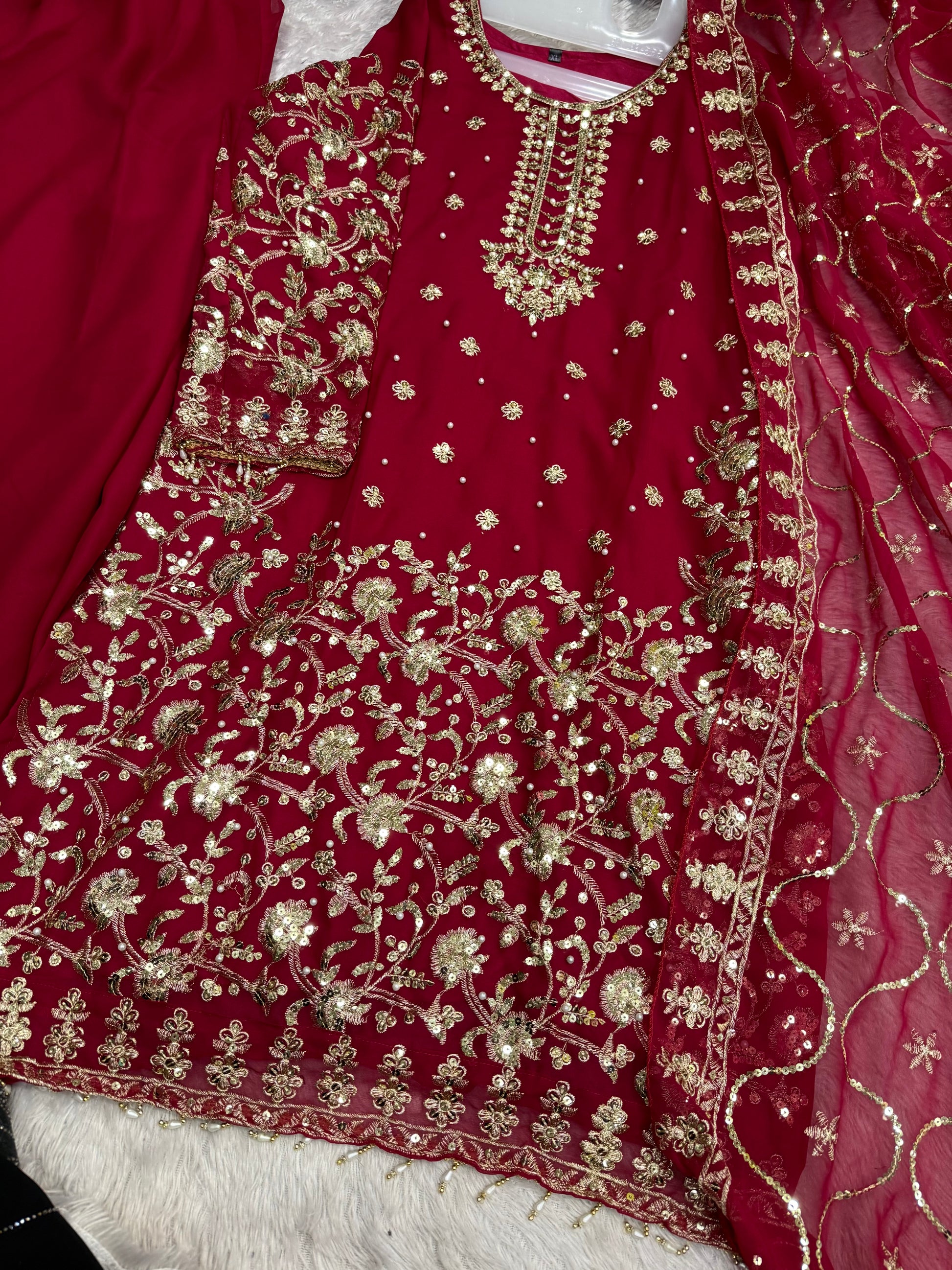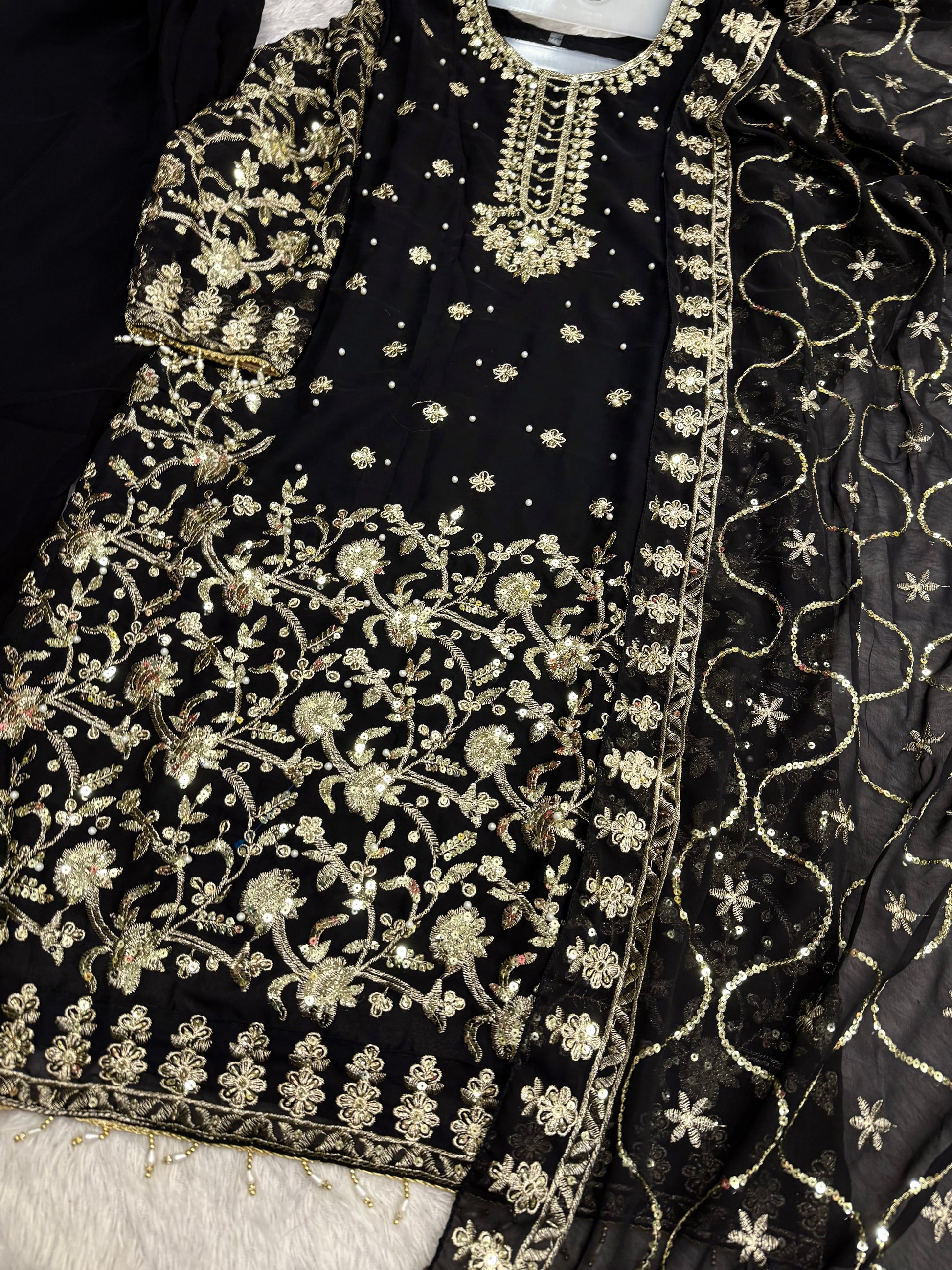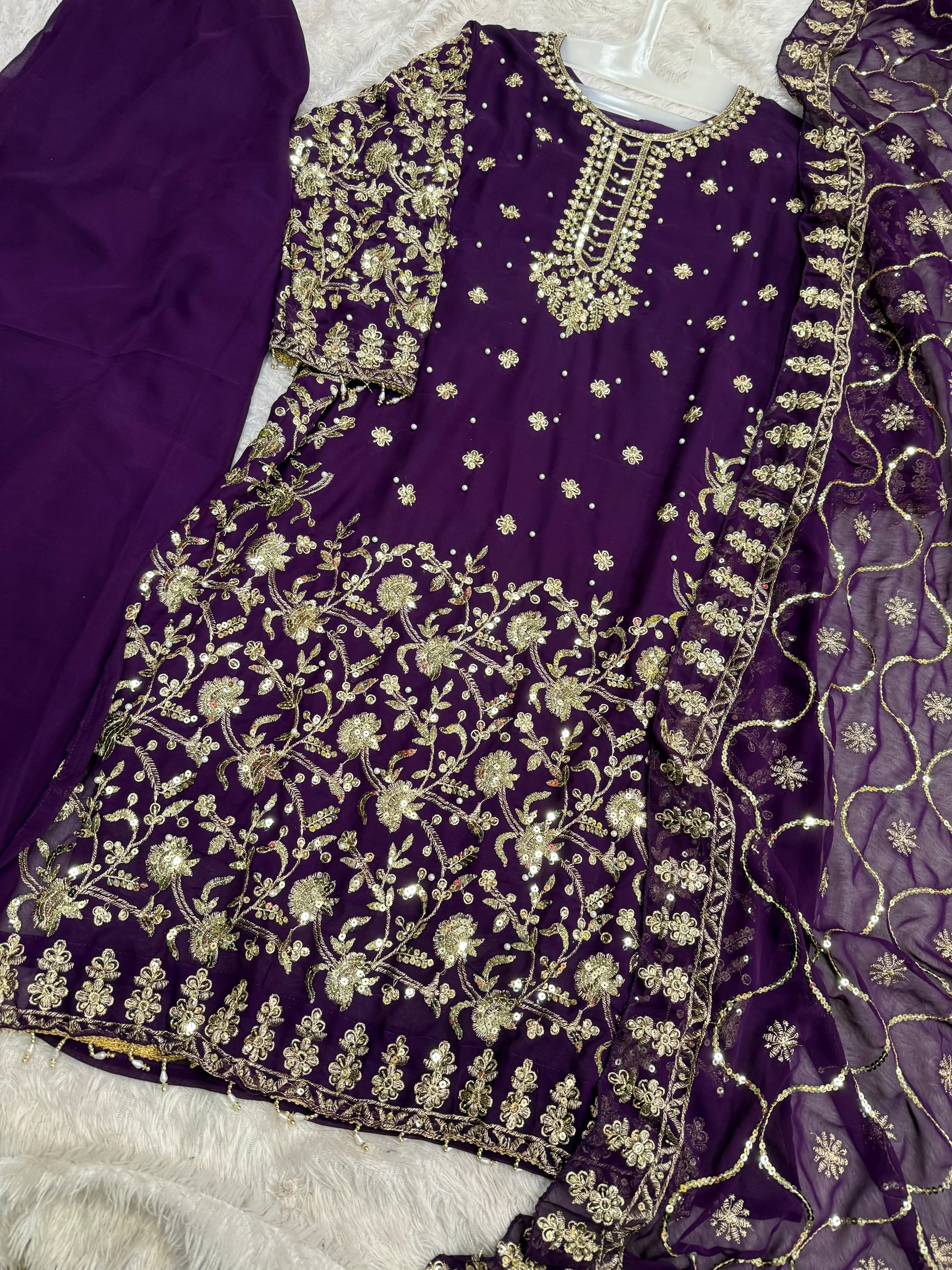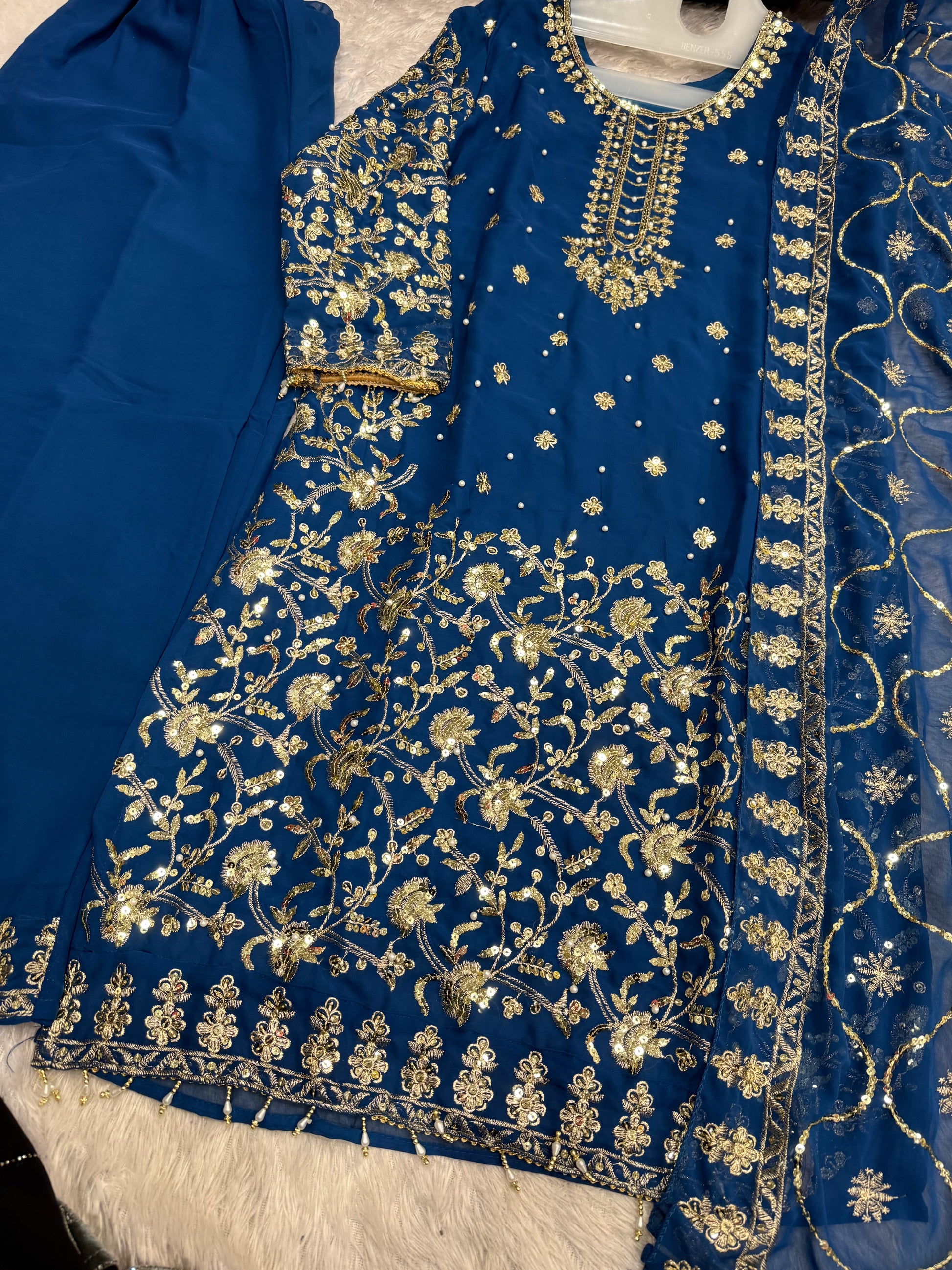 goergette top bottoms dupattaheavy work palazzo front work back plain