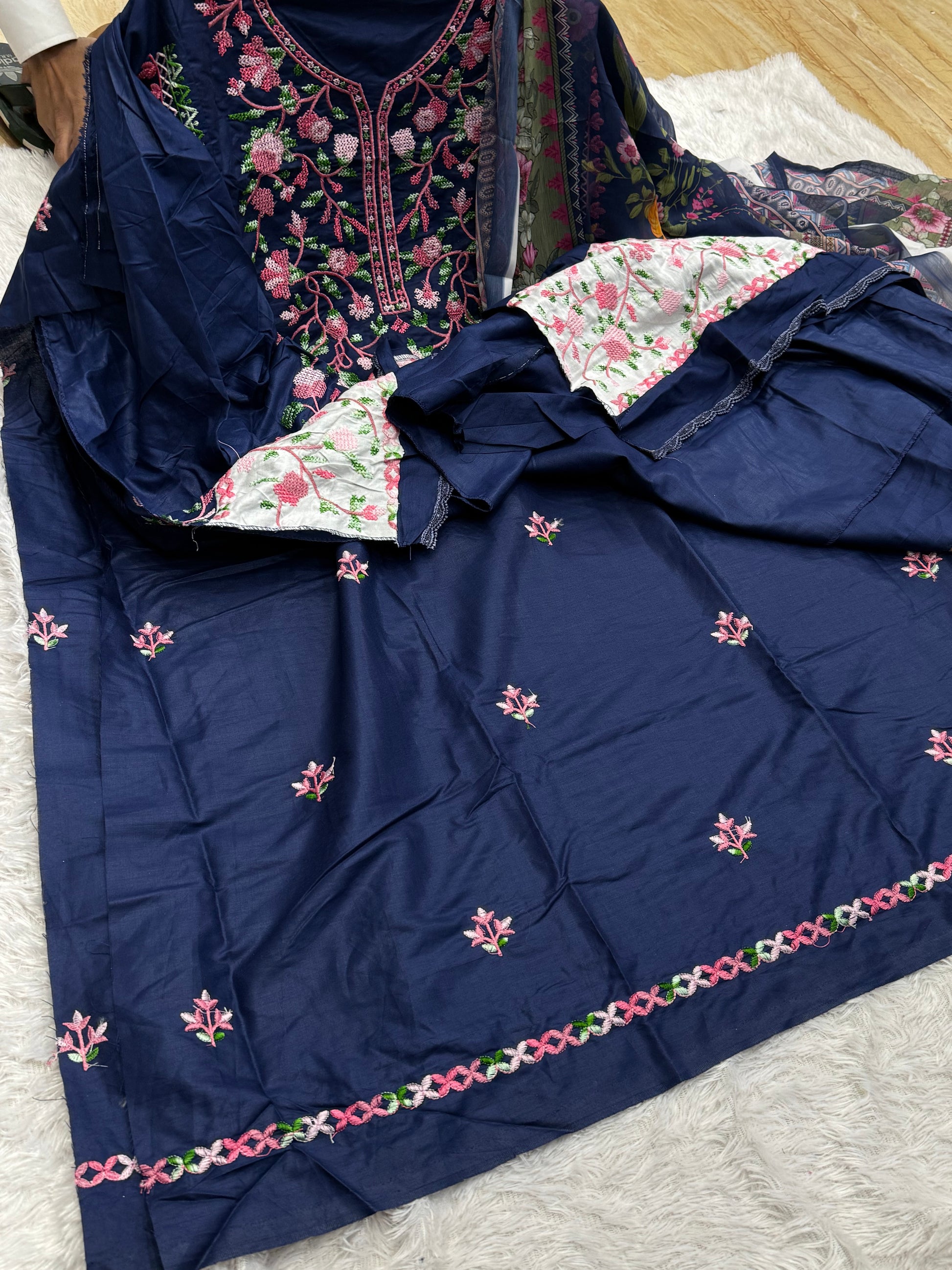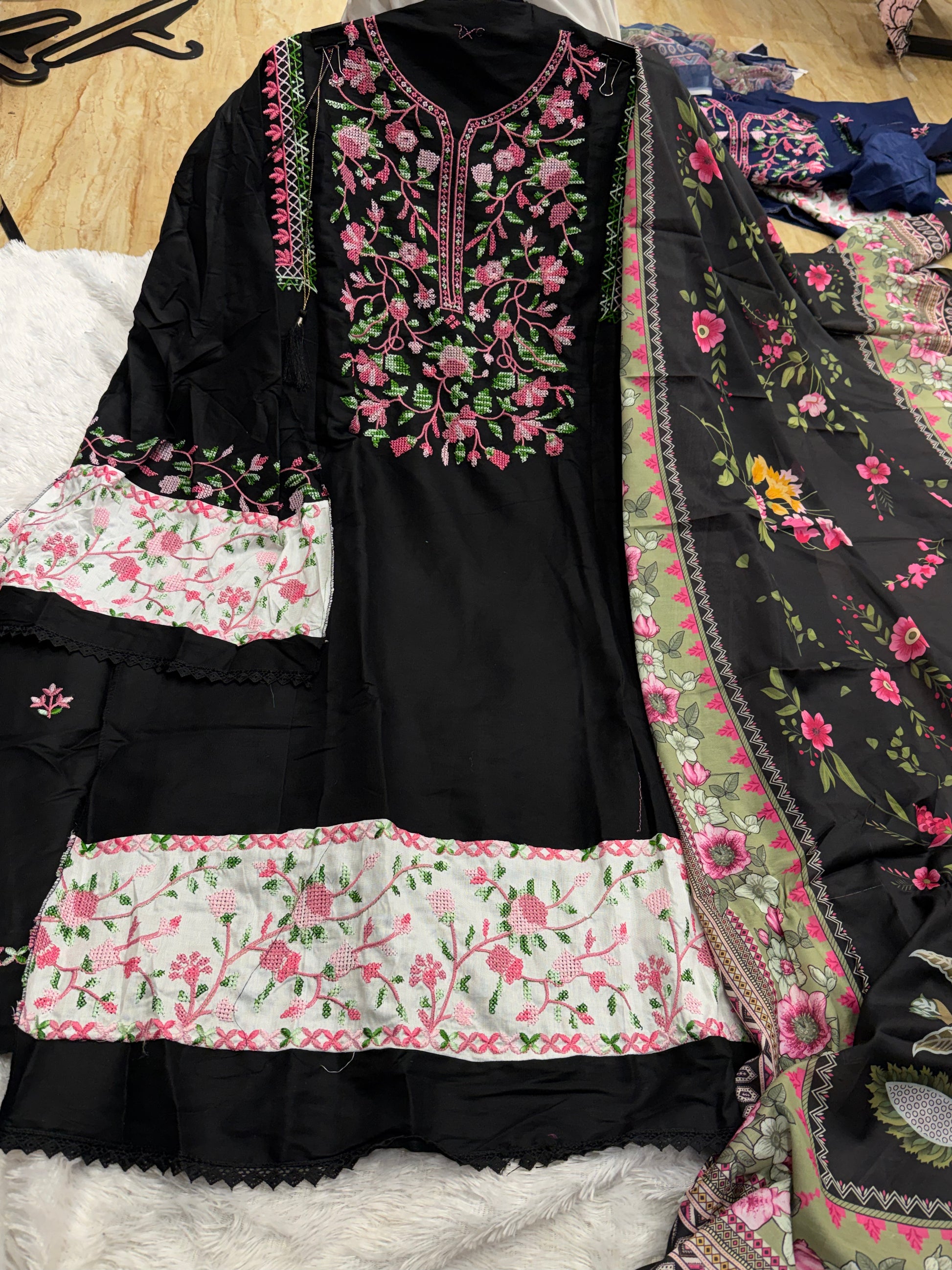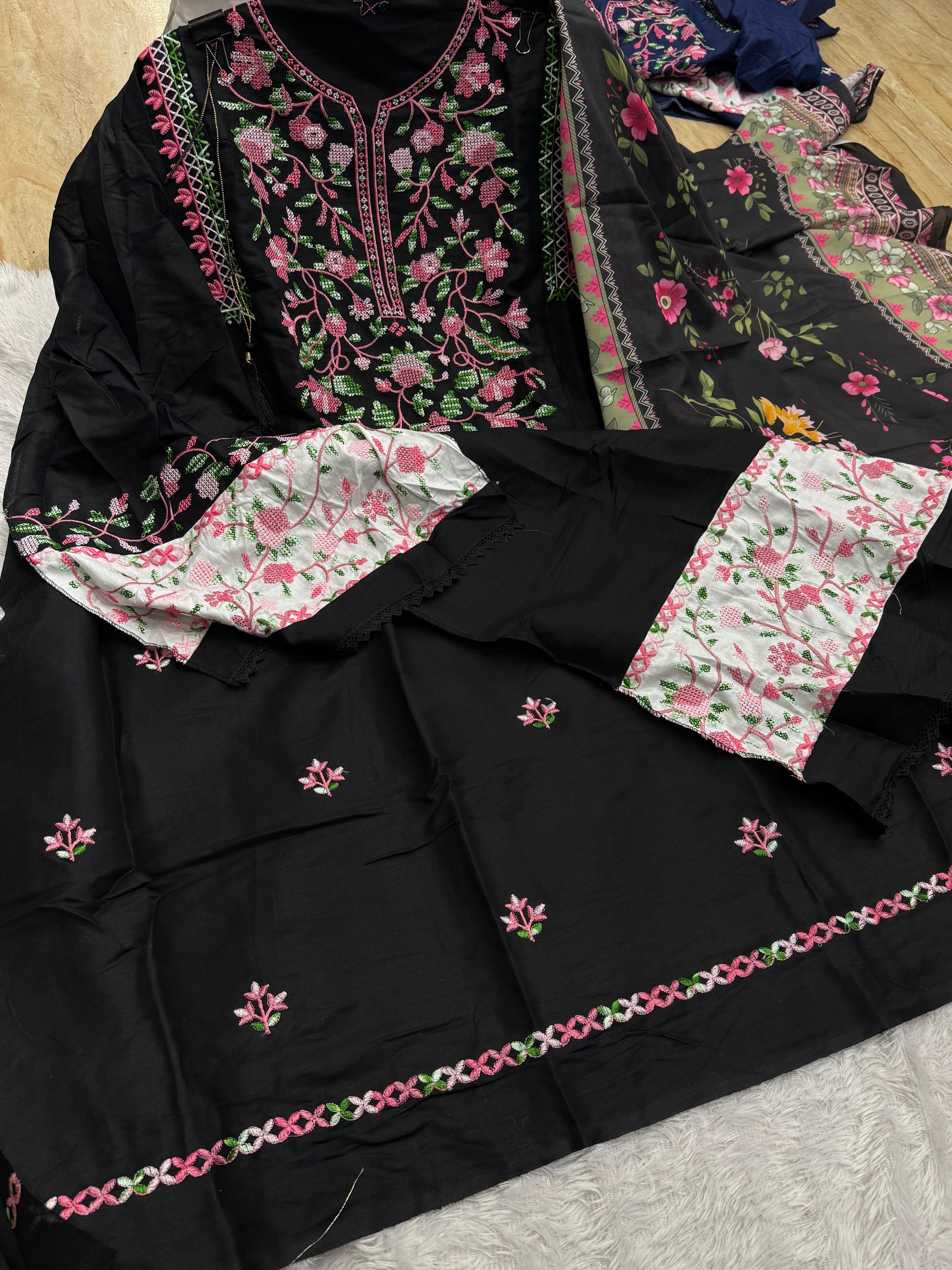 cotton embrdrd top bottoms with lawn/chiffon any duptt