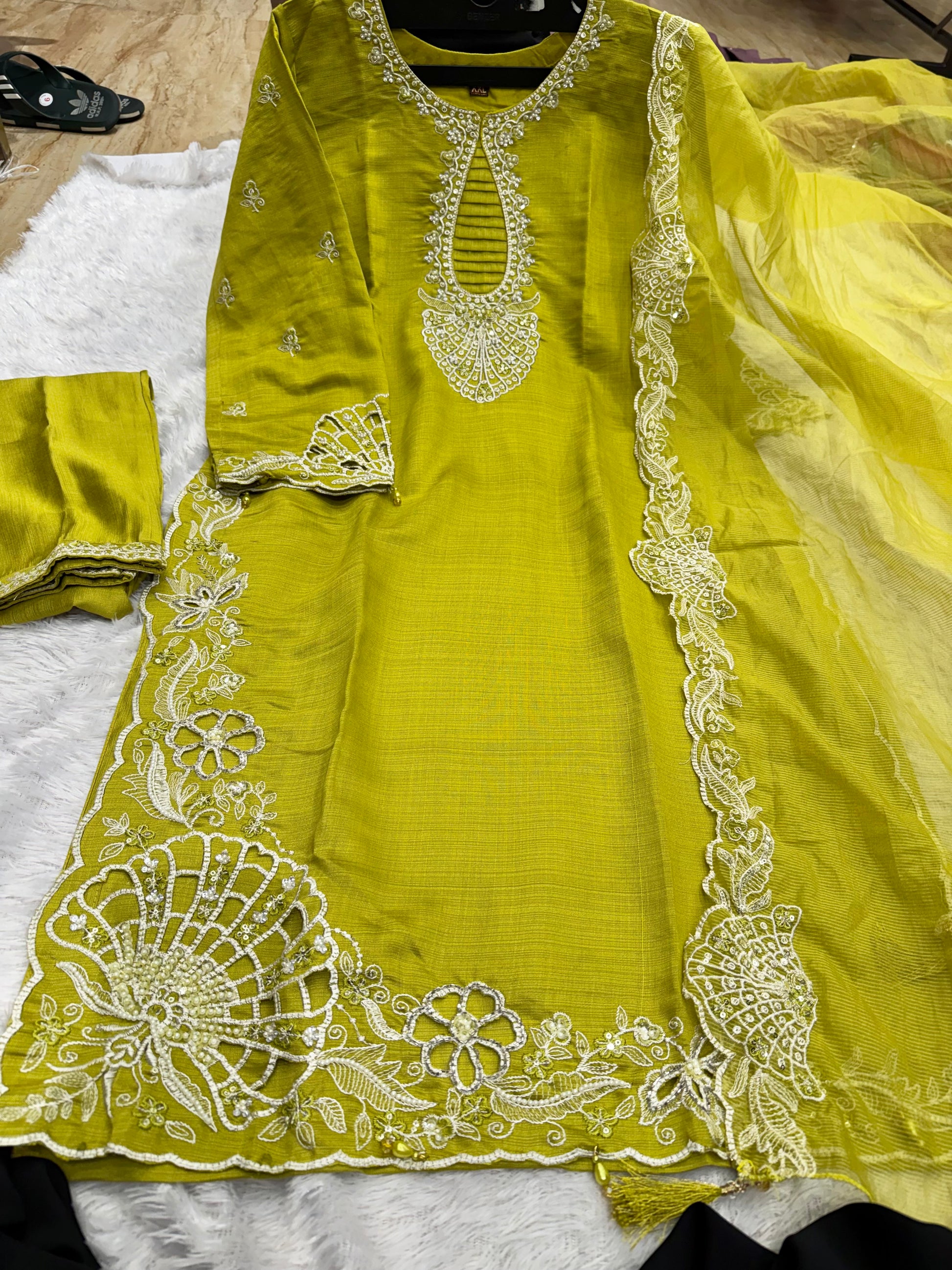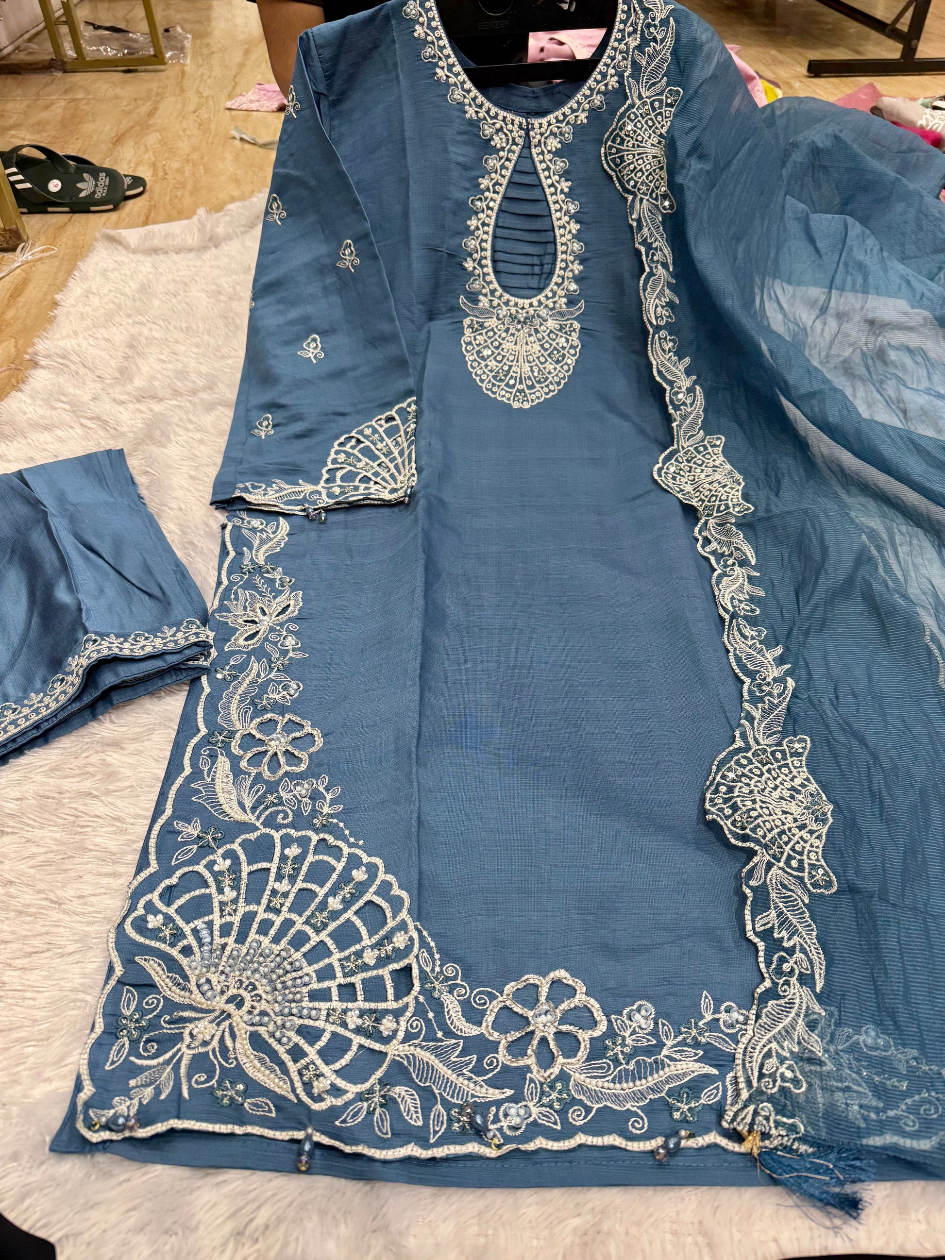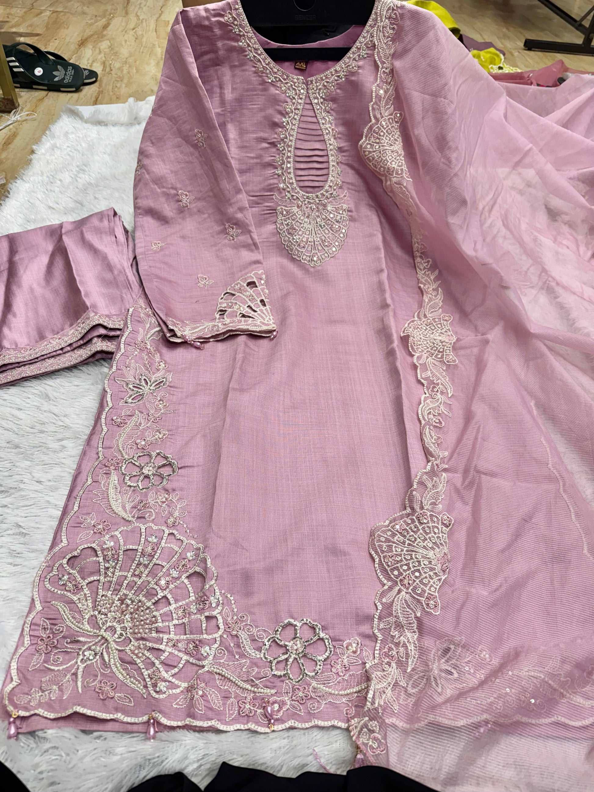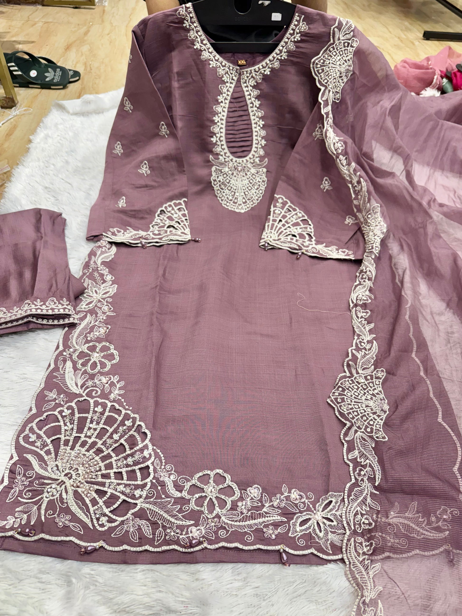 Vertical cutwork handwork outfit vertical kota cotton duptt