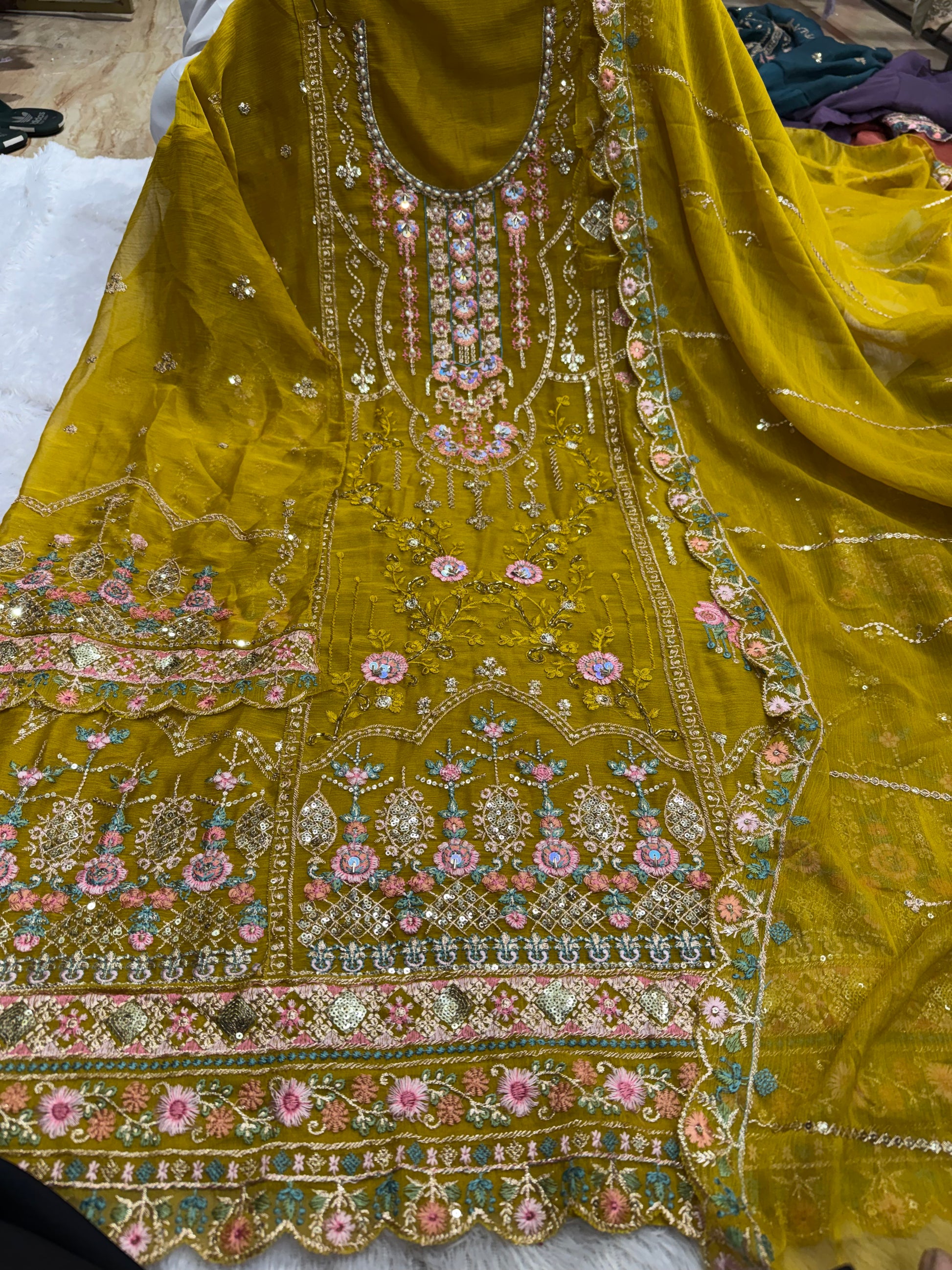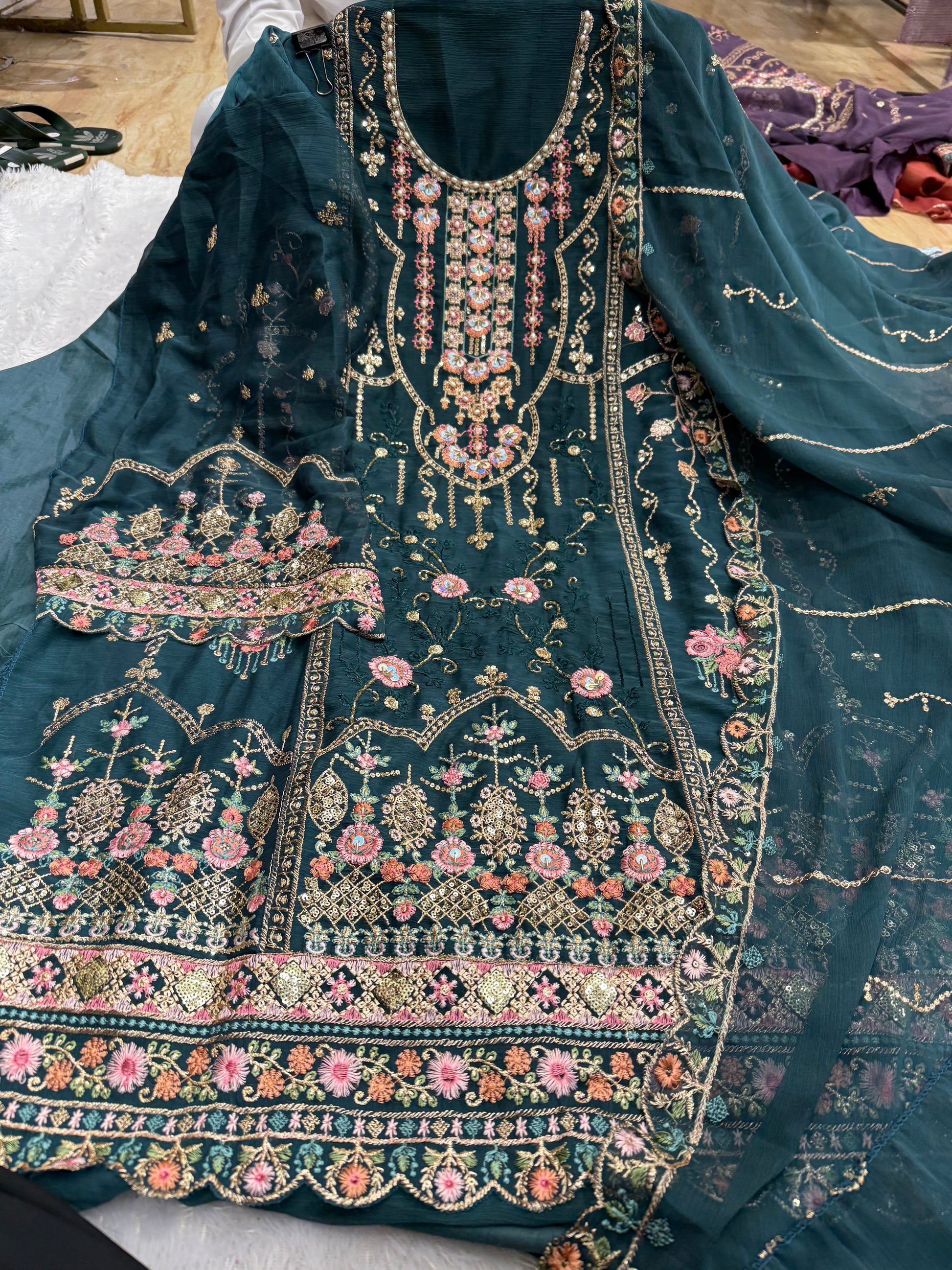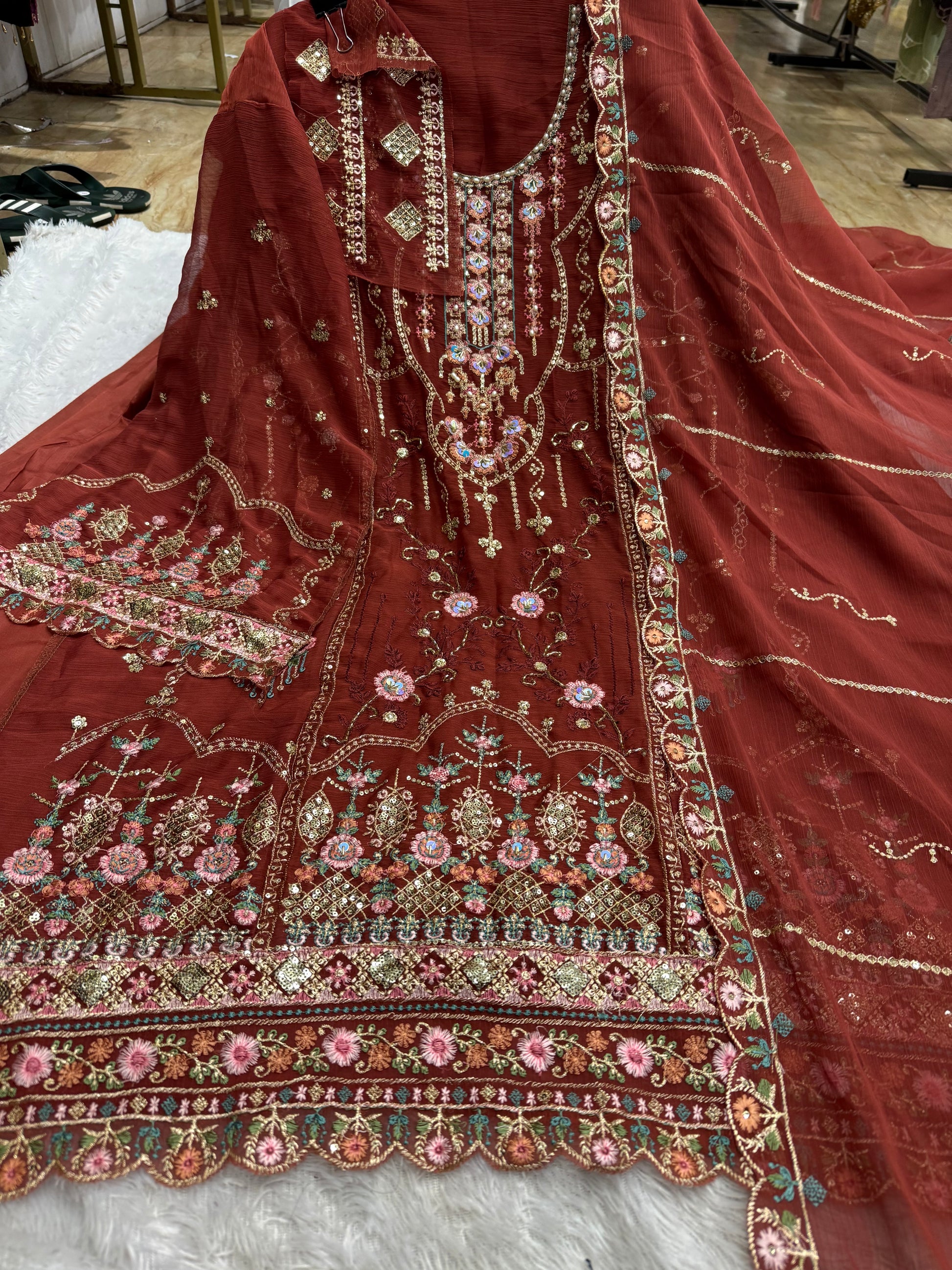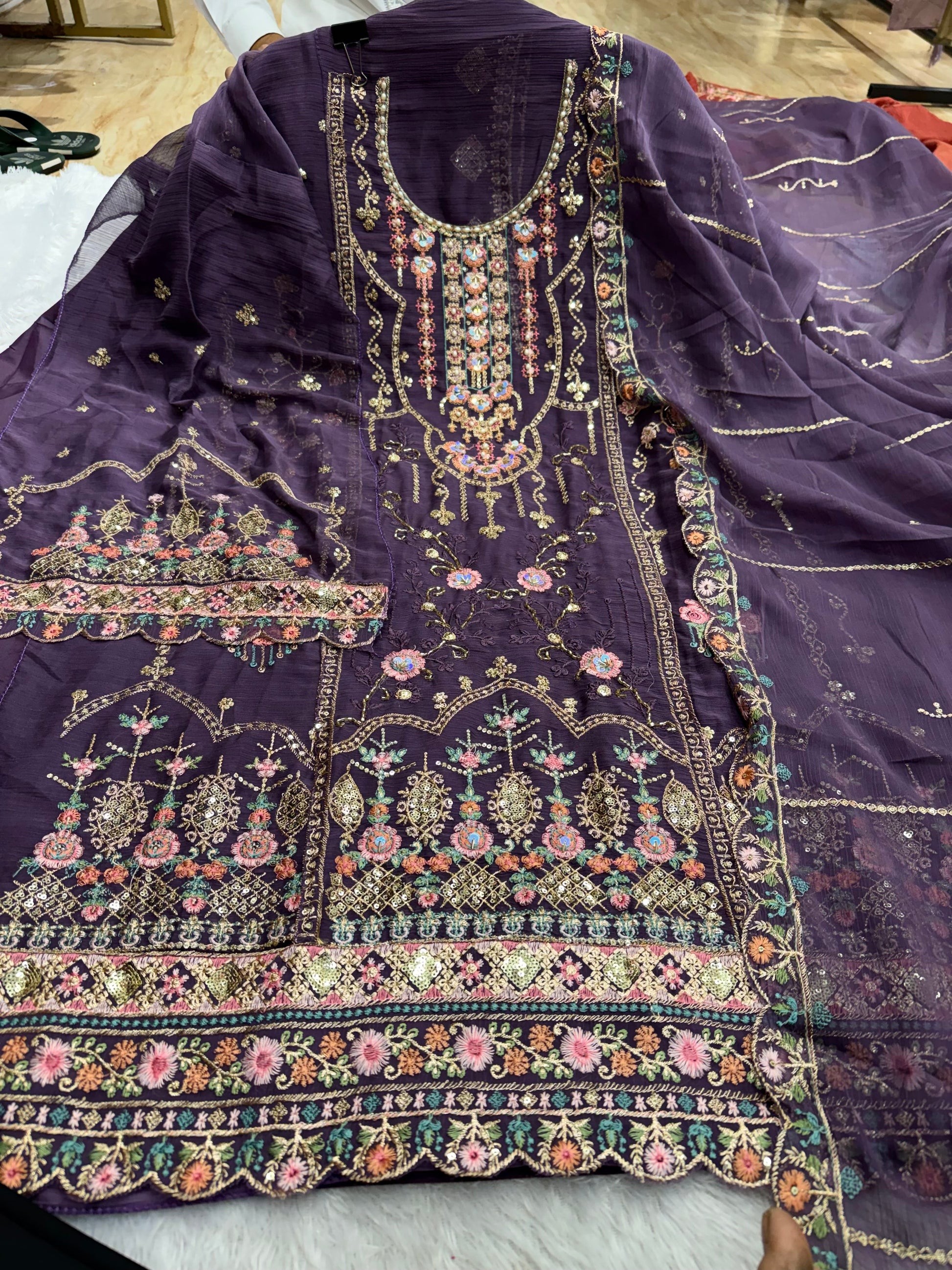 Crinckle chiffon handwork outfit