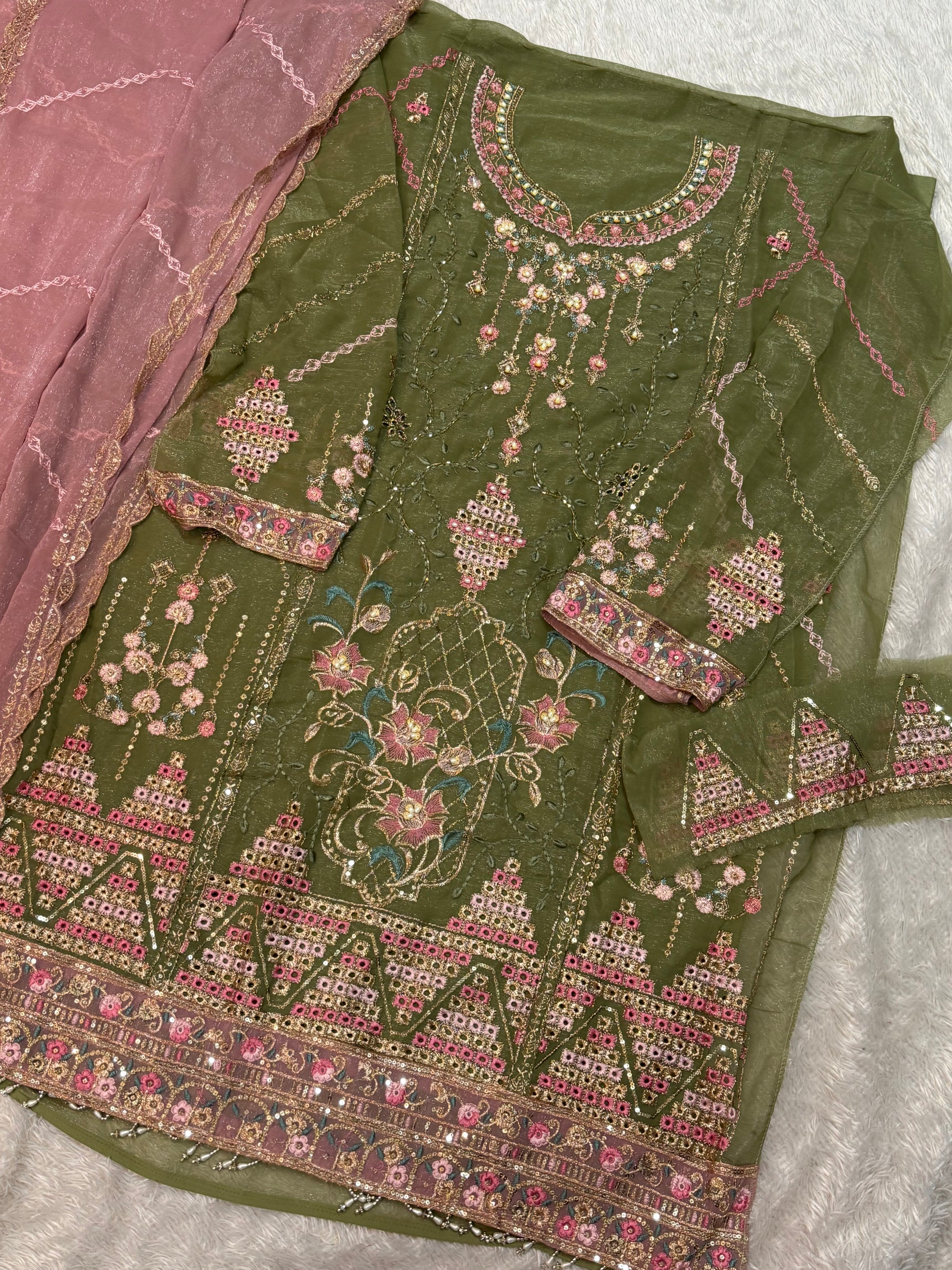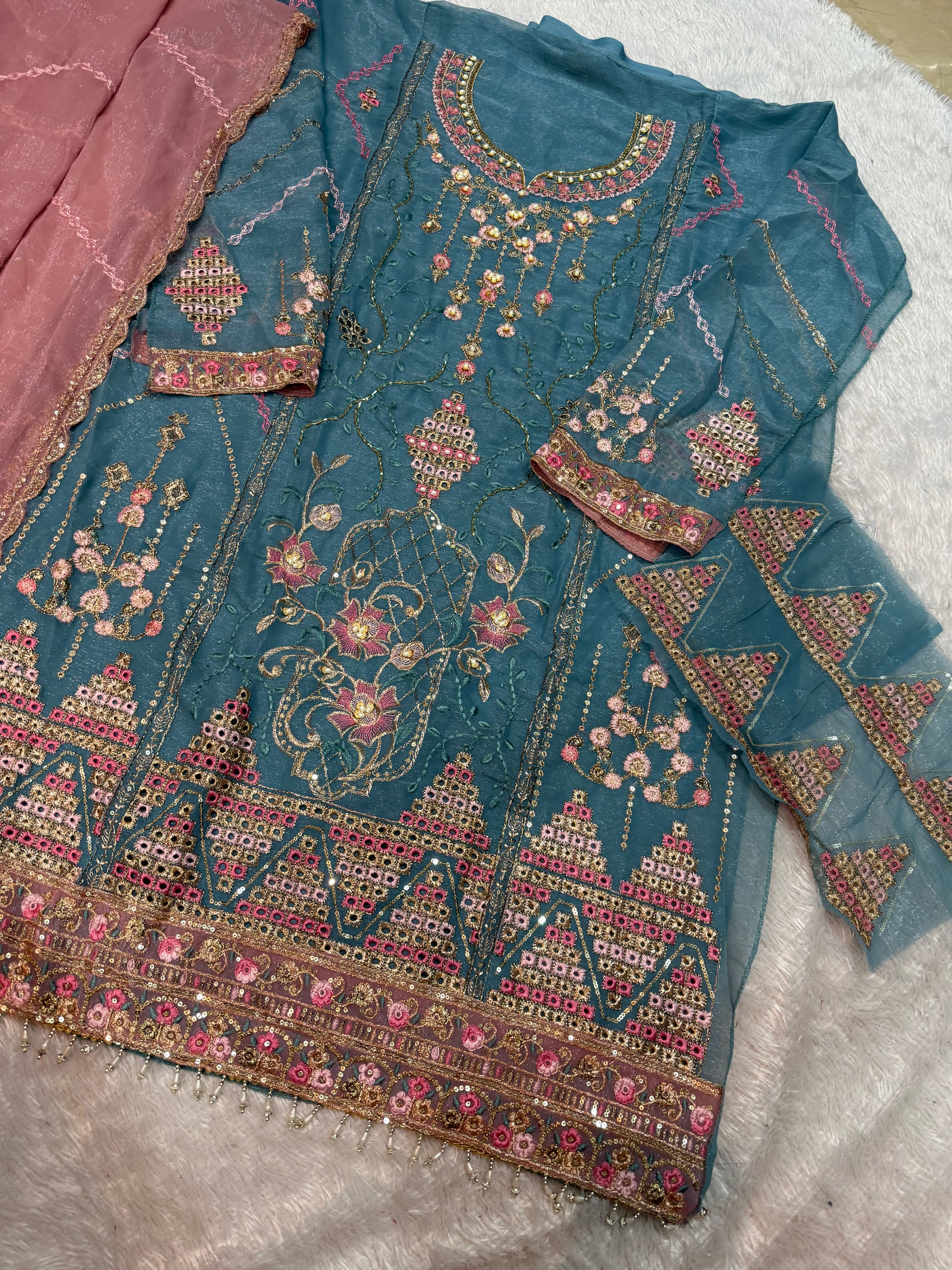 crinckle chiffon handwork embrdrd suits