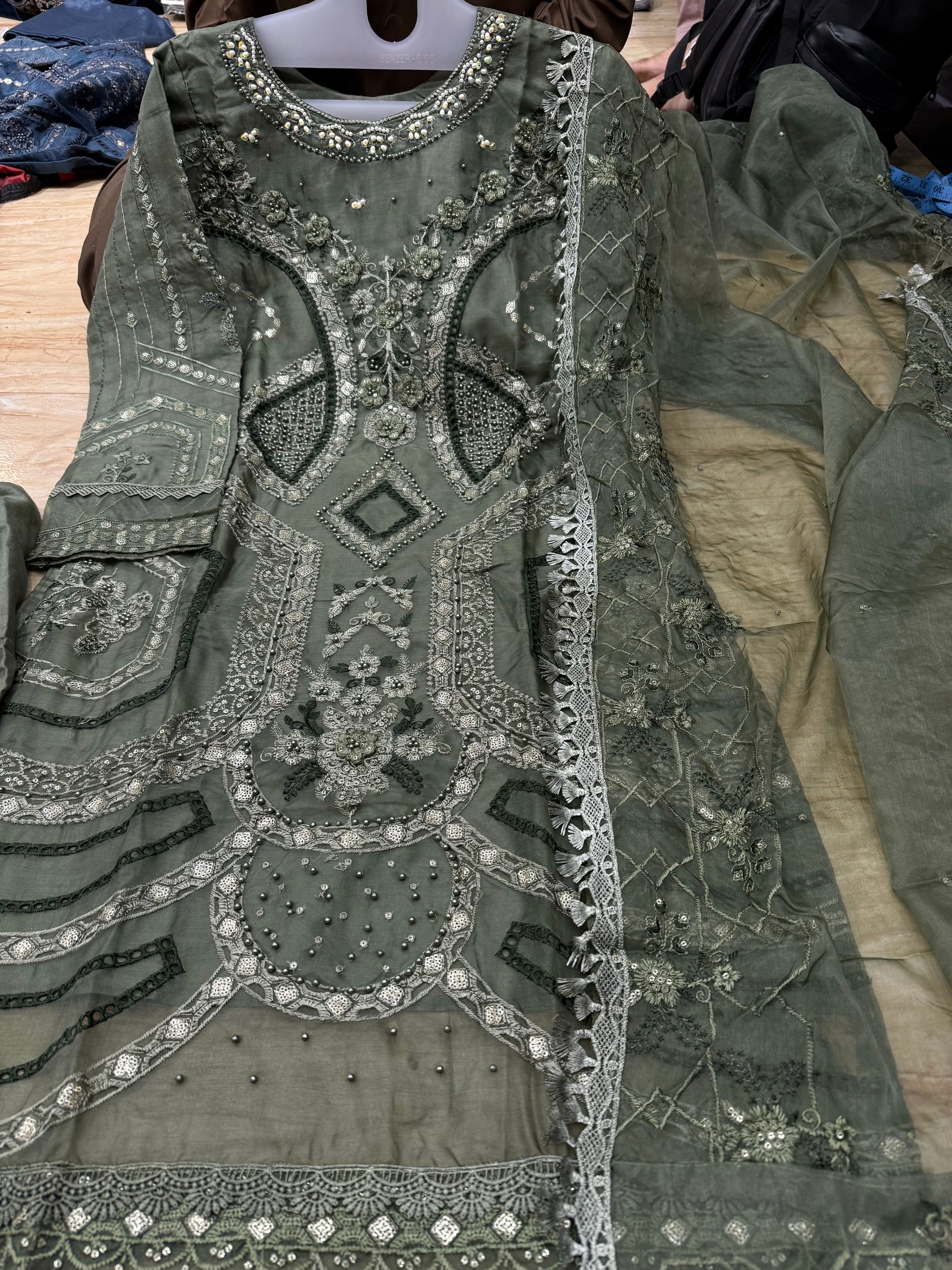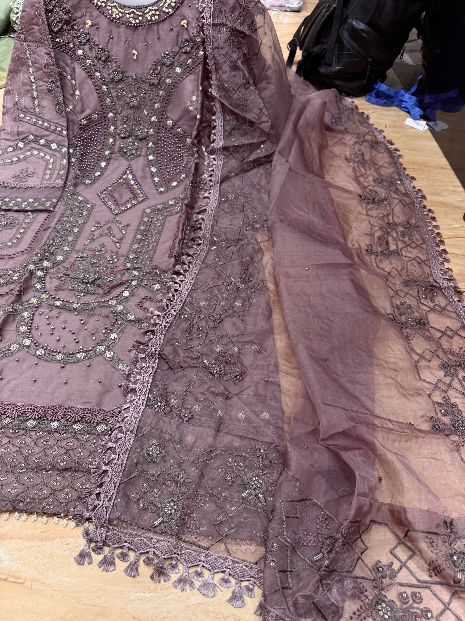 Organza Handwork moti work 3d work suits