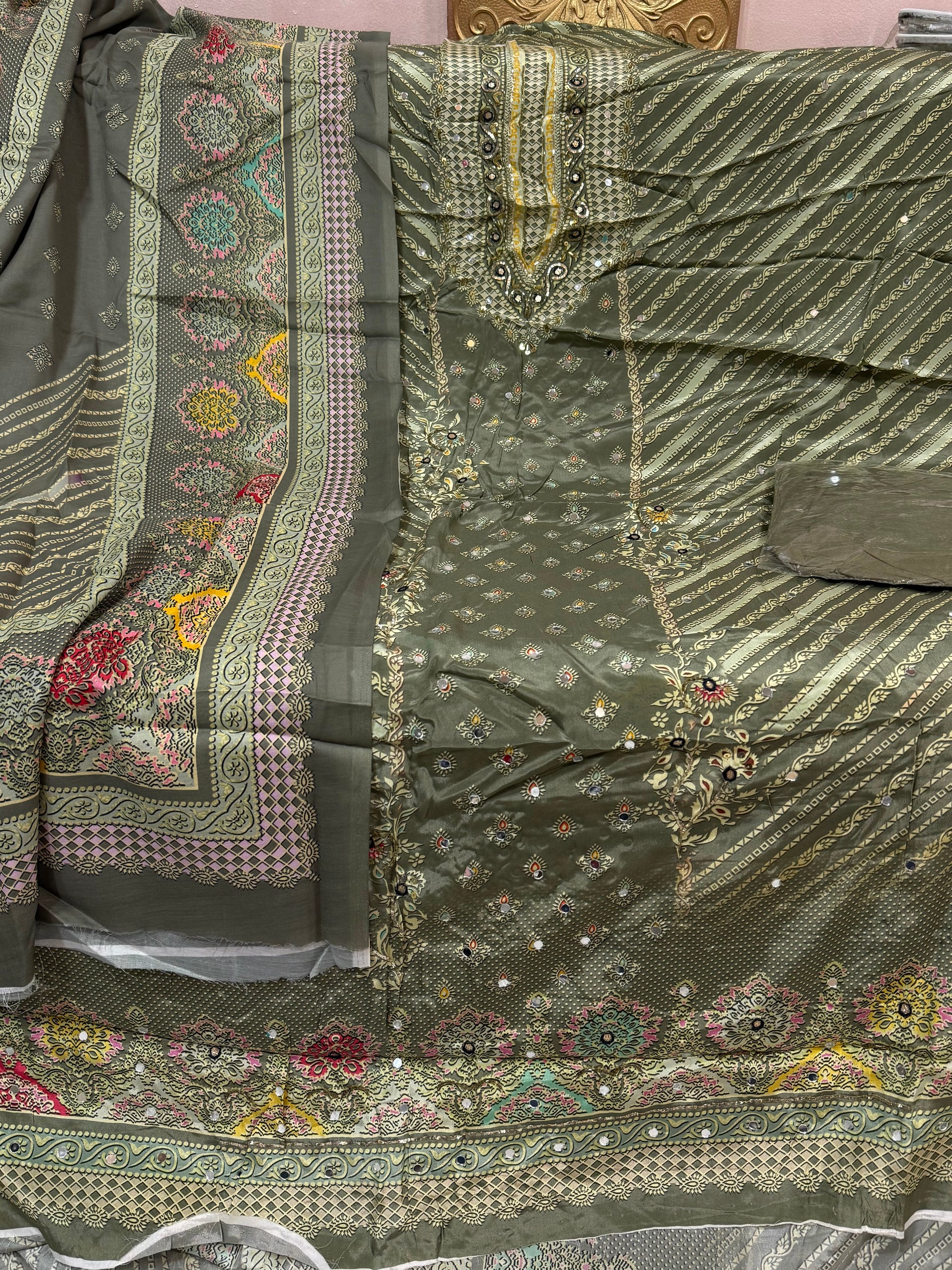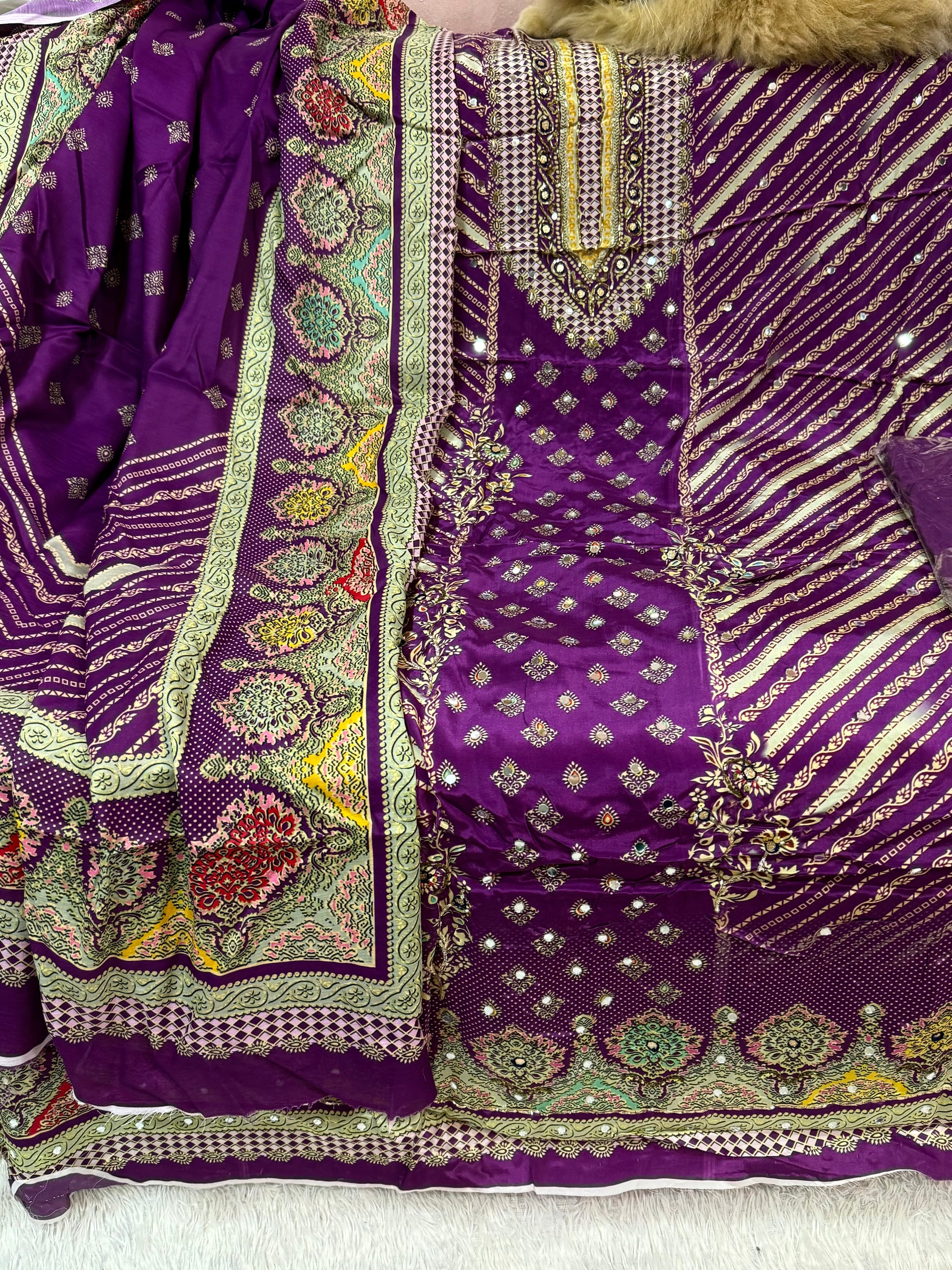Pure handwork crepe suit lawn duptt cotton bottoms Unstitched