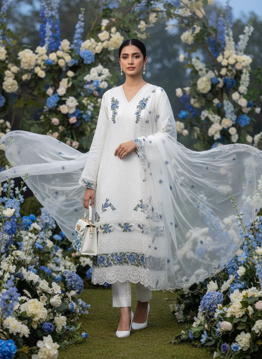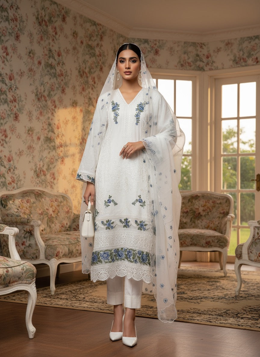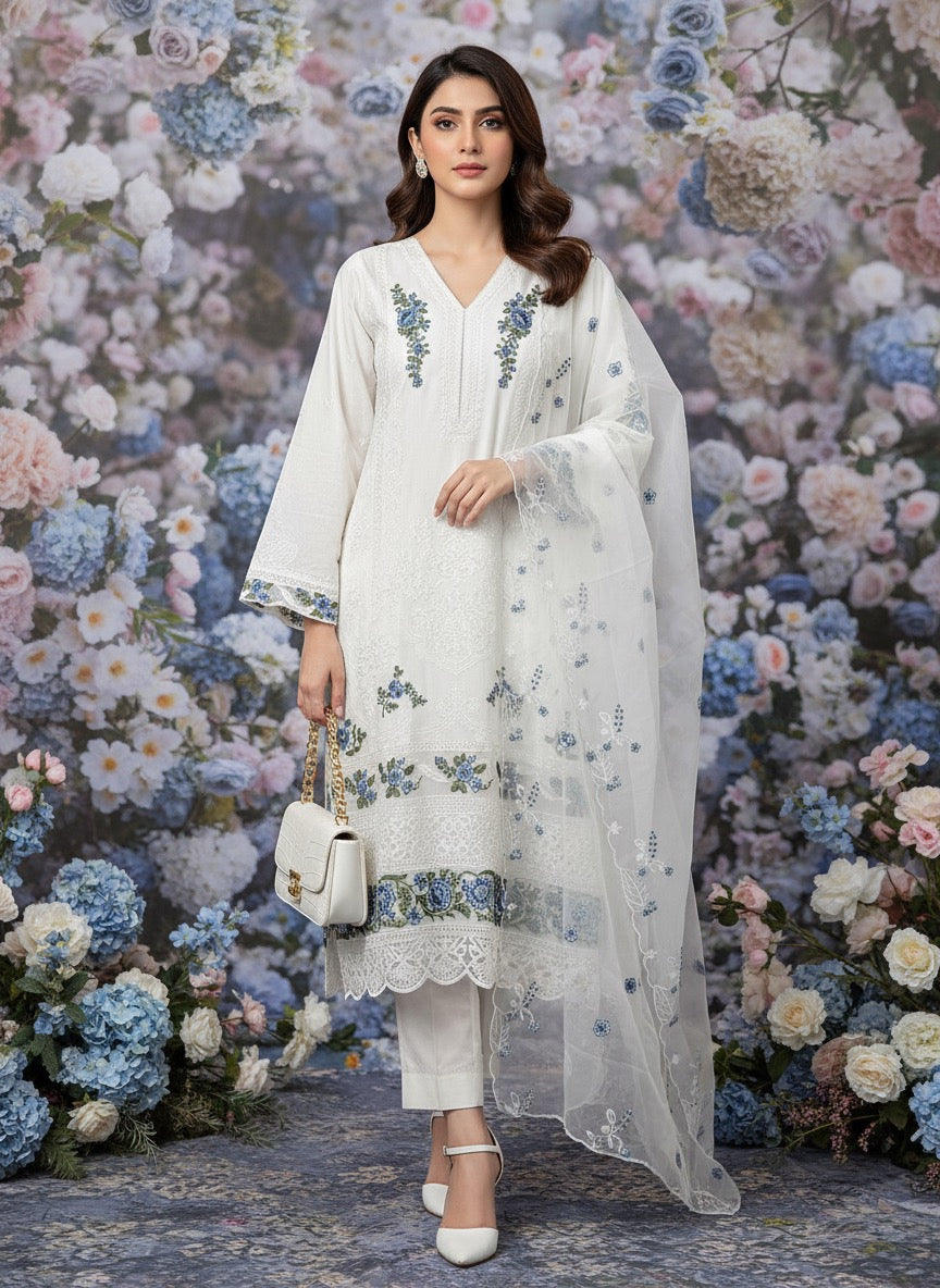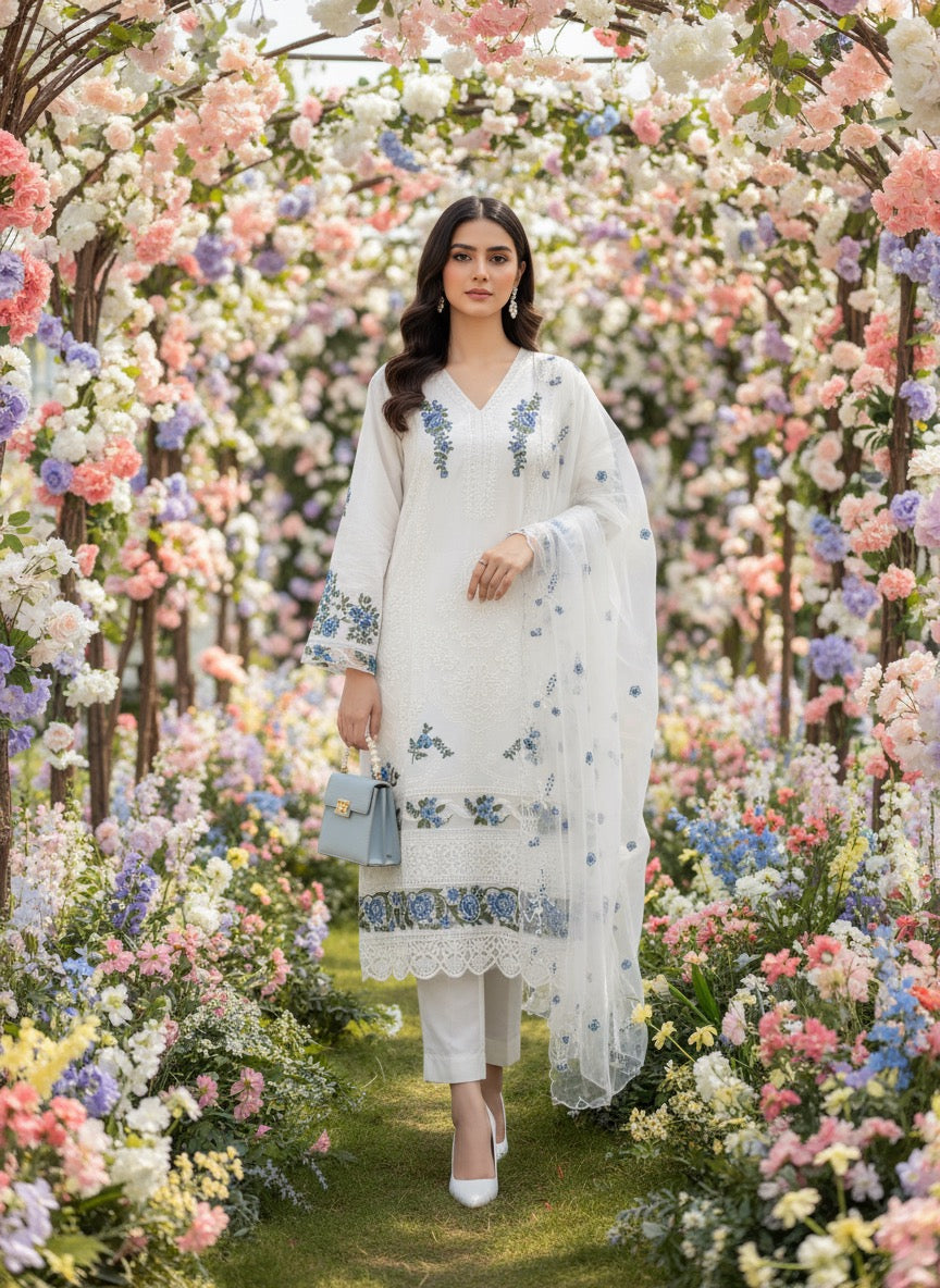 cambric cotton embroidered suits cotton bottons organza embrdrd dupatta