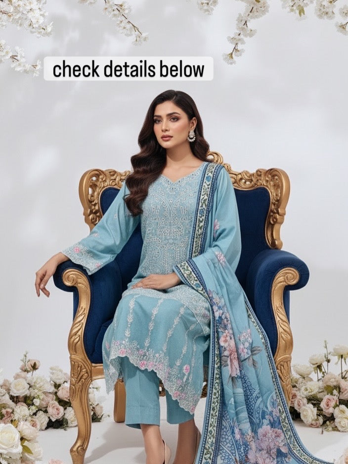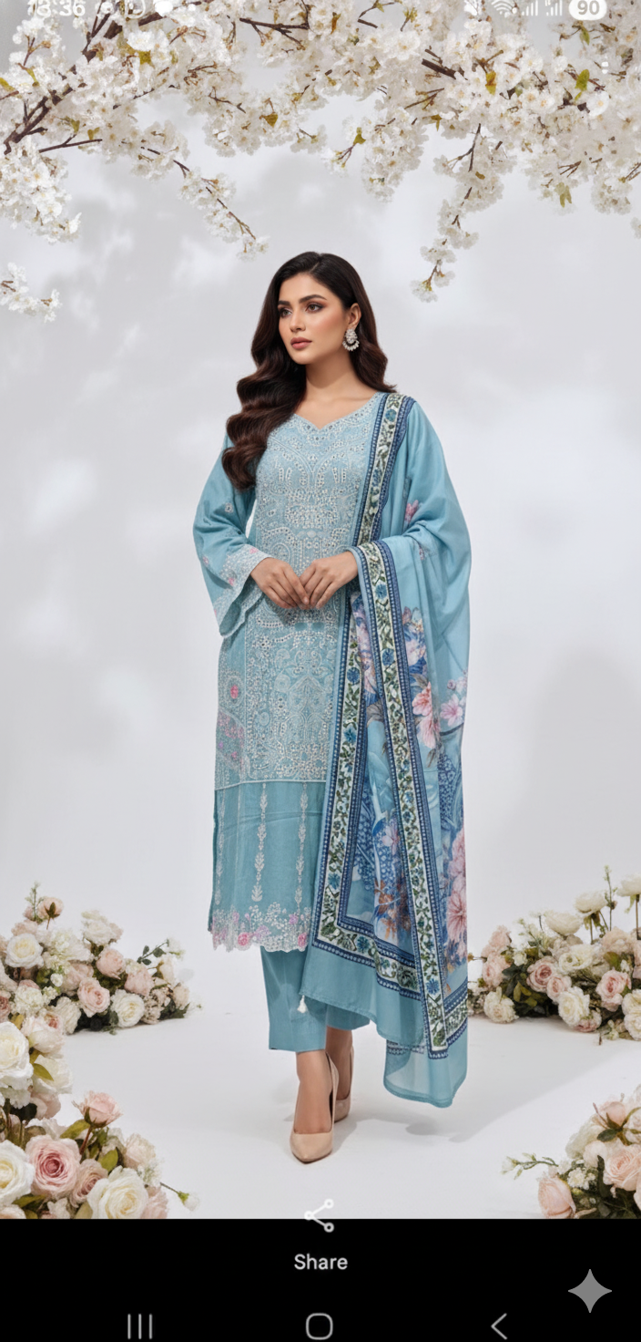 Cambric cotton heavy chikenckari suit lwn dupatta
