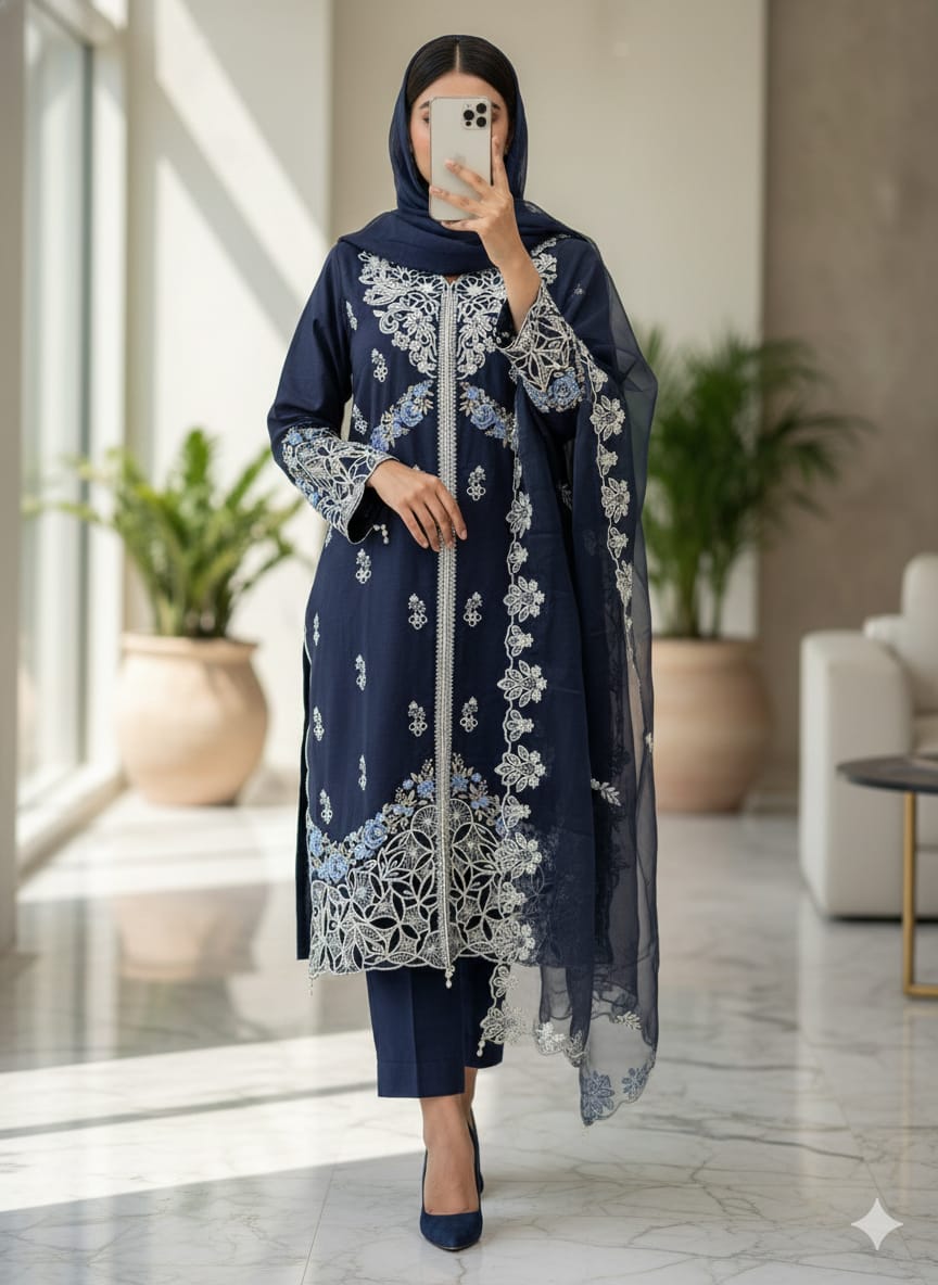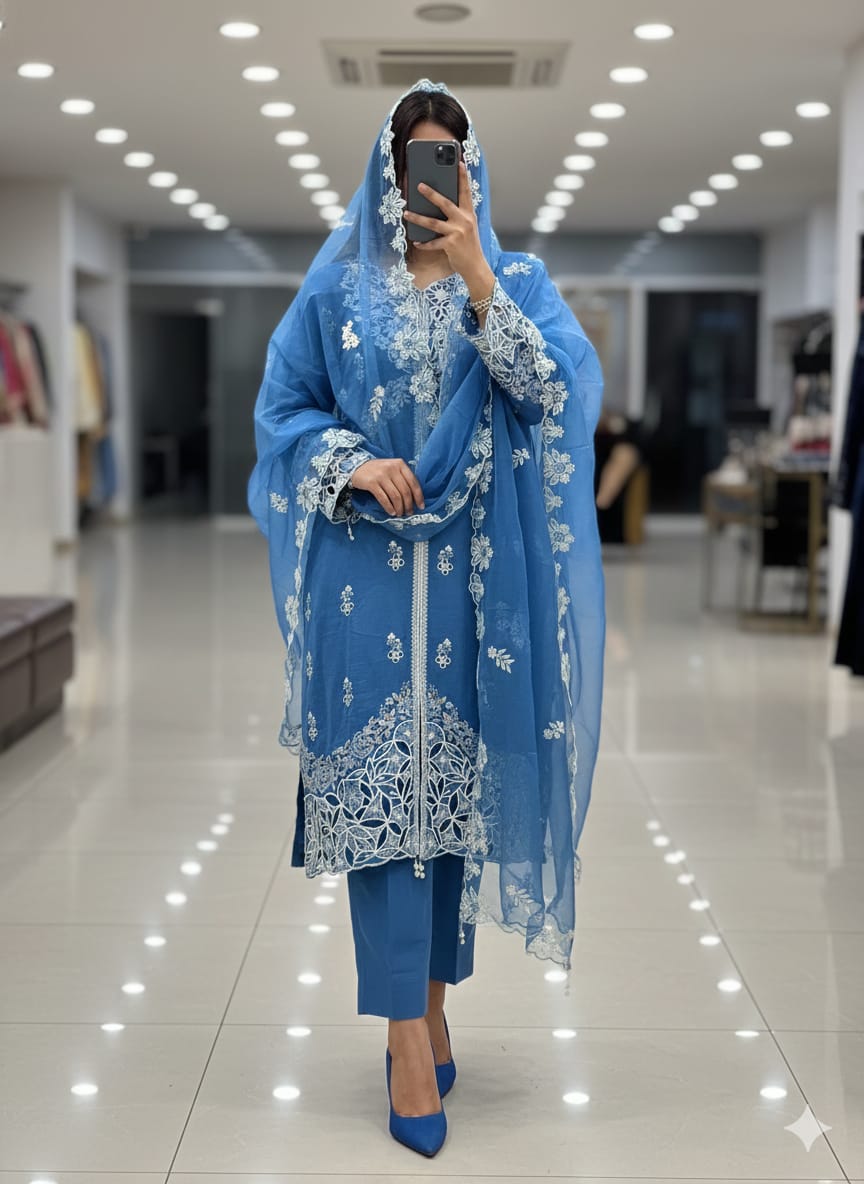Vertical Cotton cutwork handwork suits