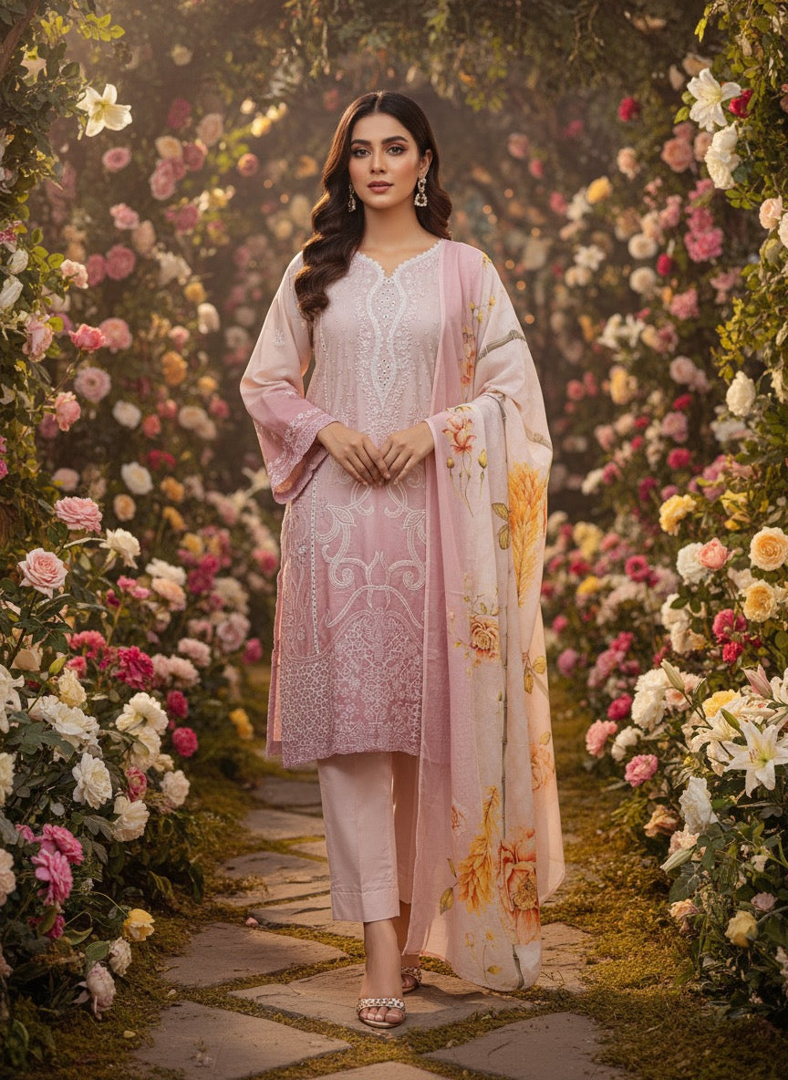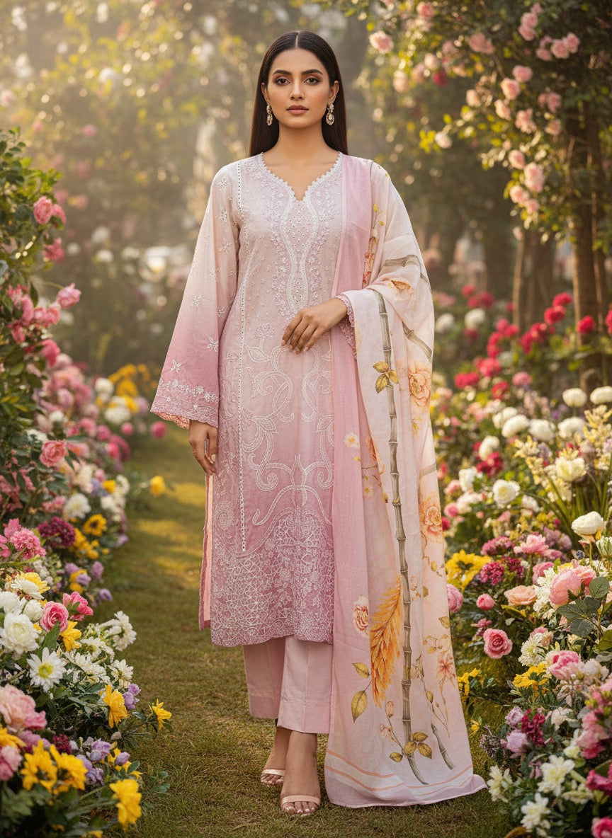 shaded cambric cotton heavy work chikenkari embrdrd suits