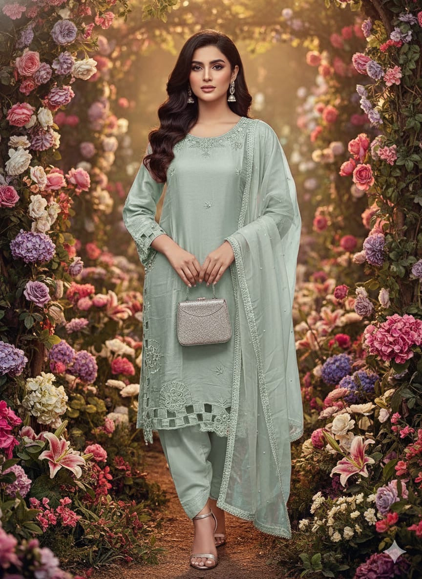 Vertical cotton satin partywear heavy work readymade suits