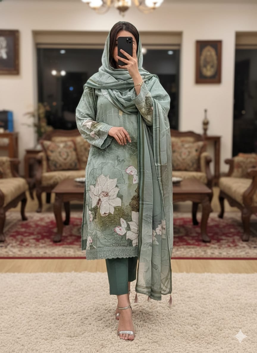 pure crepe handwork full outfitrayon bottomsbutter crepe inner stitchedpure crepe dupatta